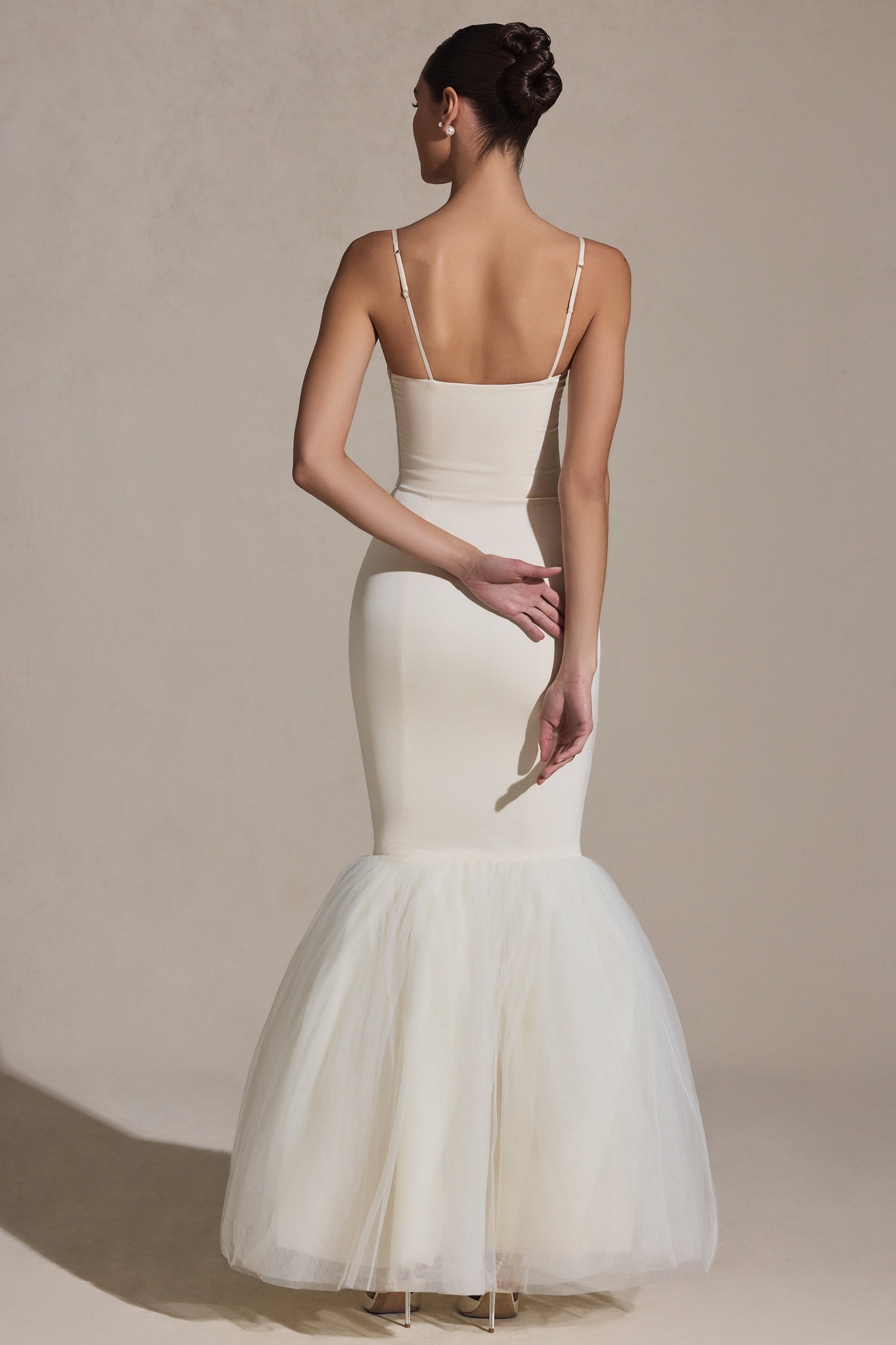 Designed to capture attention at any event, the Adelpha gown is crafted to a statement fishtail silhouette with a contrasting voluminous hem overlaid with layers of frothy tulle. It��s made from premium lightweight slinky satin for a figure-hugging fit and is framed with a clean square neckline.