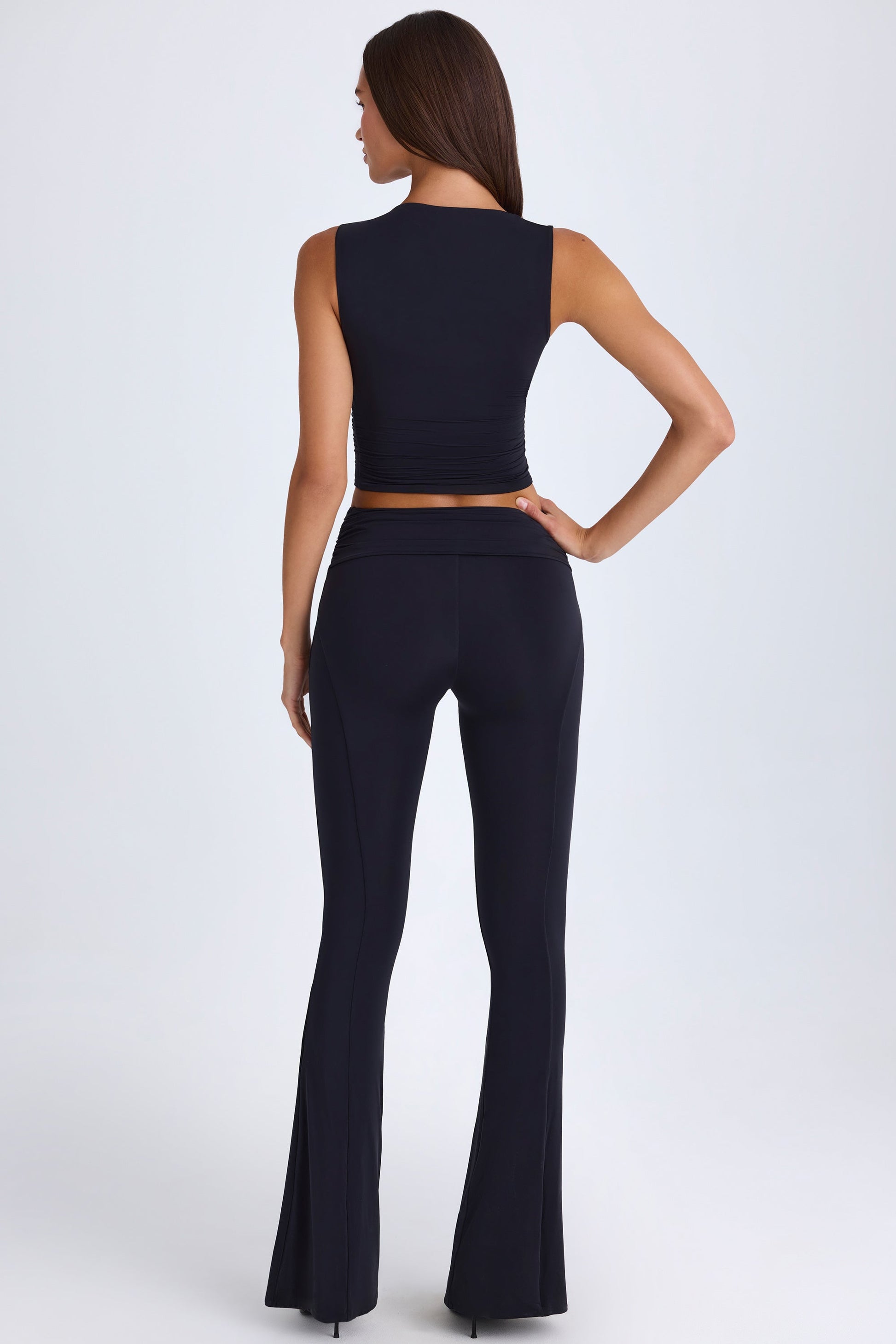 Styling staples. The Alexandria trousers are a classic wardrobe staple, perfect for casual styling and dressed-up dates. They��re crafted from premium sheer jersey with a touch of stretch and feature a mid-rise foldover elasticated waistband for a comfortable, non-restrictive fit. They��re traced with contouring seams and cut to a bodycon silhouette with flared legs.