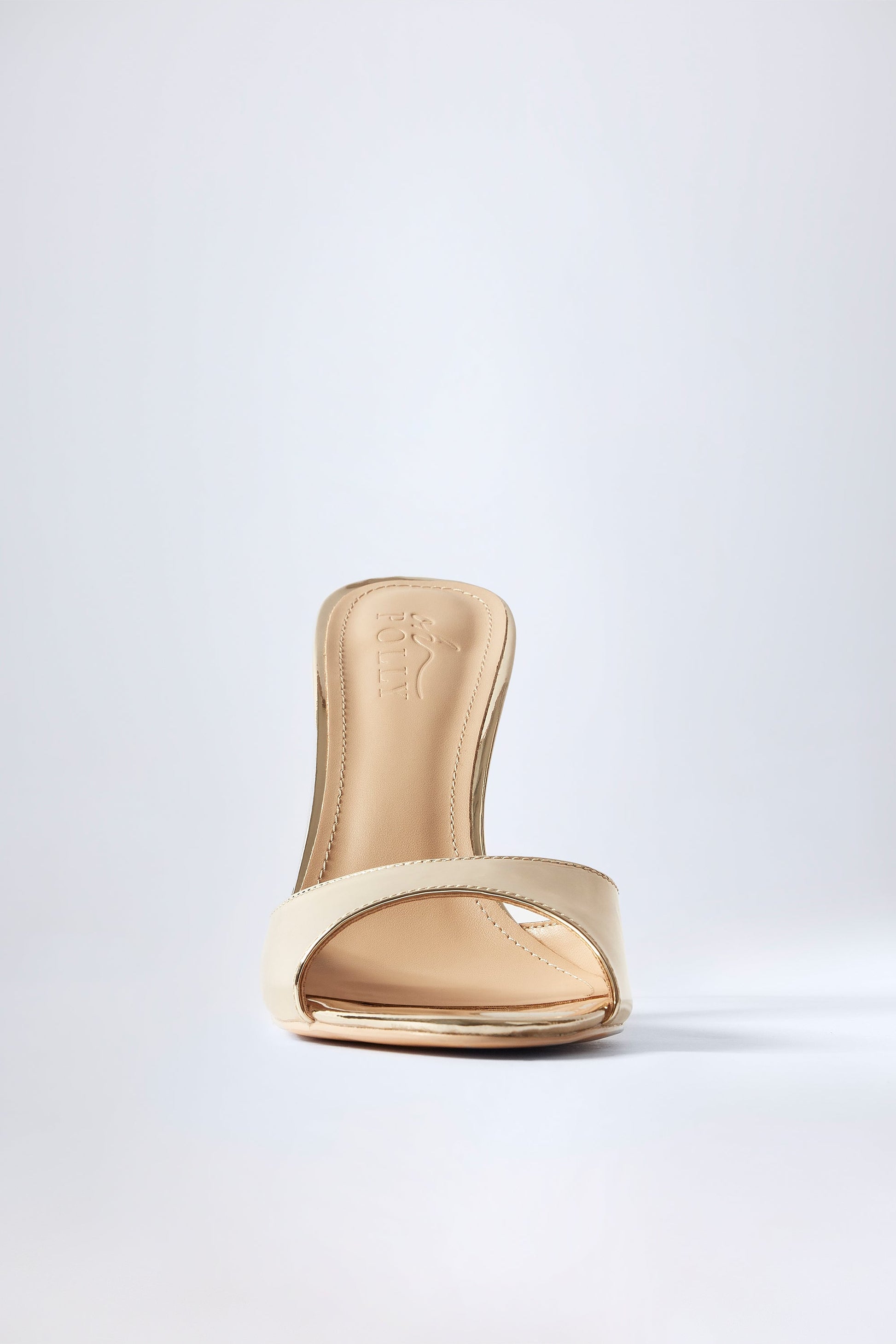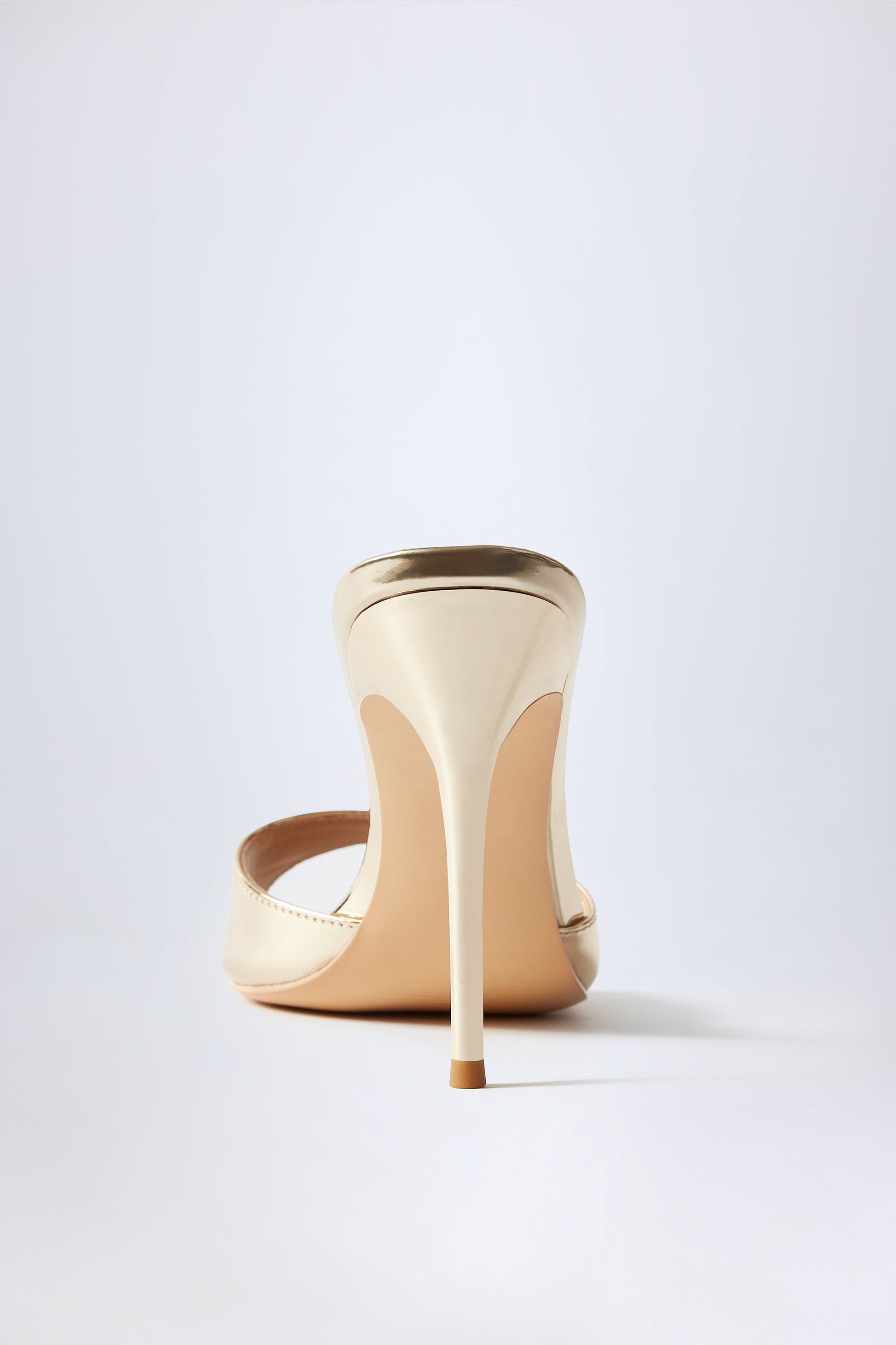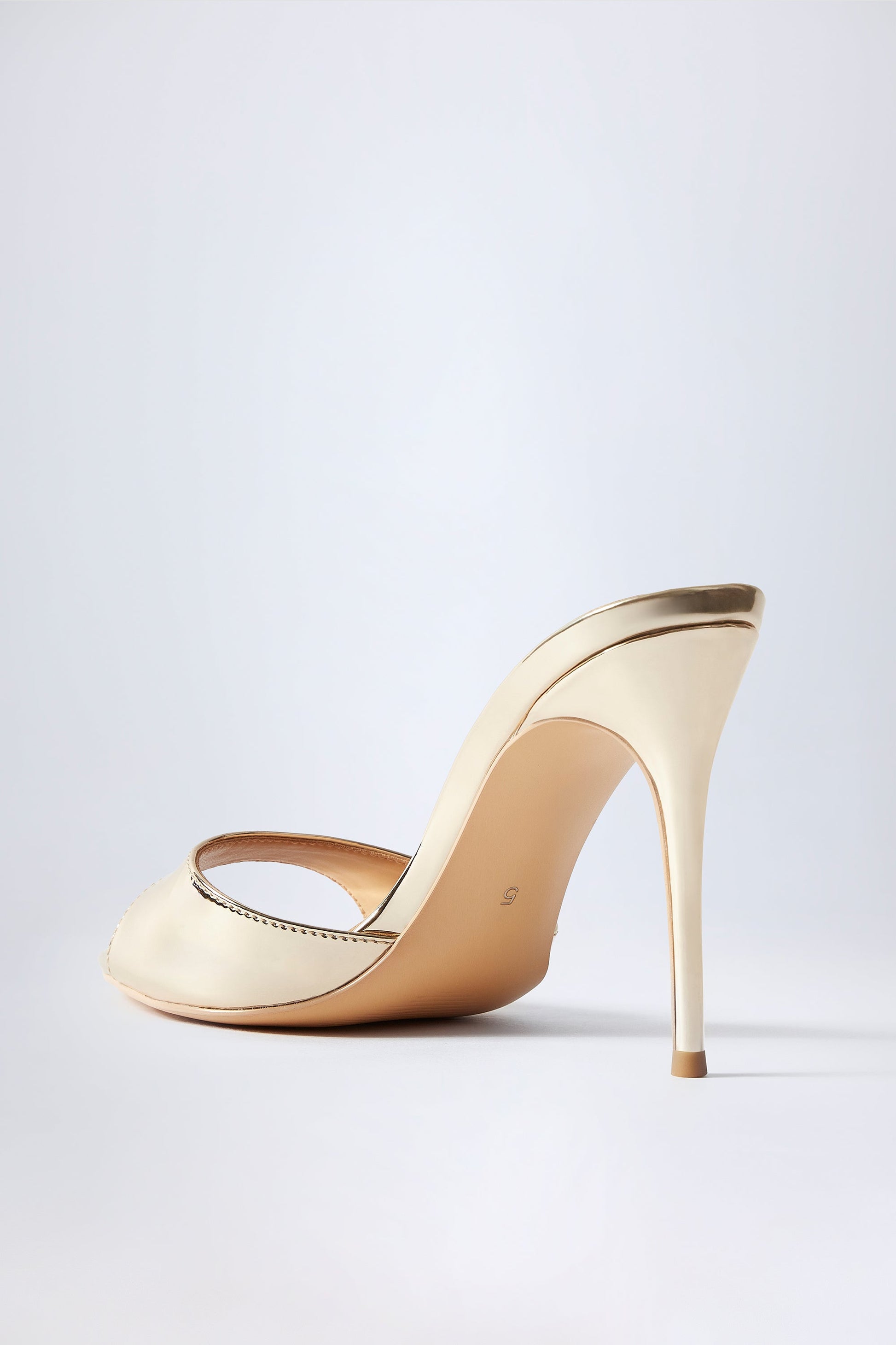 Put your best foot forward. A forever classic with a contemporary twist, the Amandine mules are crafted from premium faux leather to a chic almond-shaped peep-toe silhouette. They��re grounded atop a cushioned stiletto heel and are available in four statement finishes, perfect for styling with your favourite Oh Polly looks.