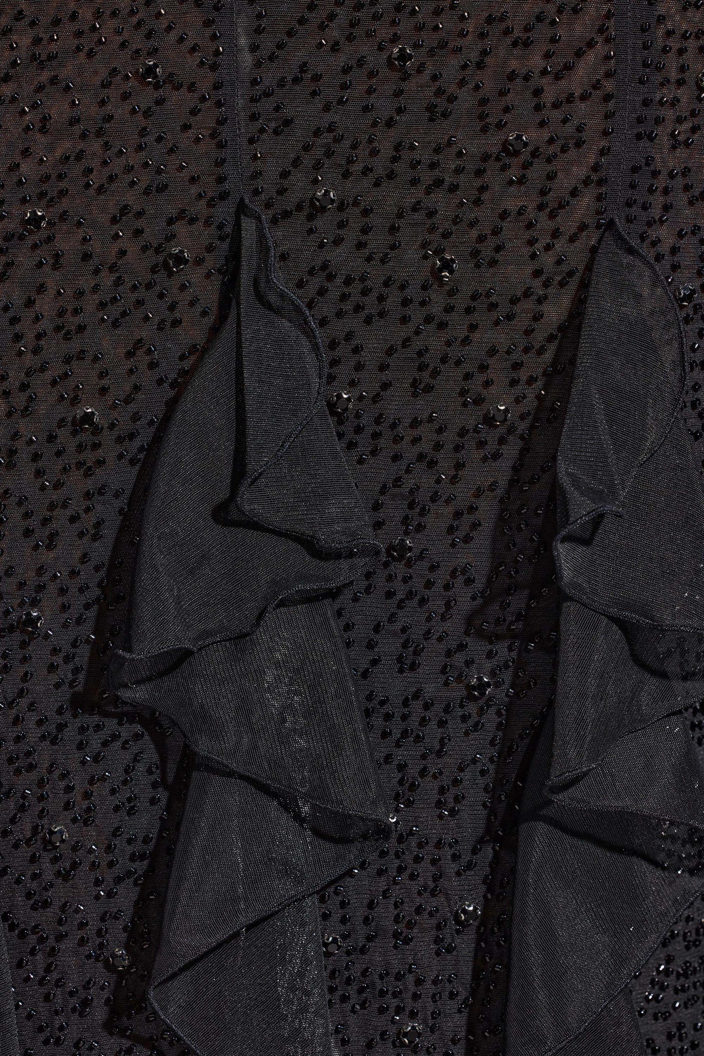 Embellished Halter Neck Ruffle Maxi Dress in Black