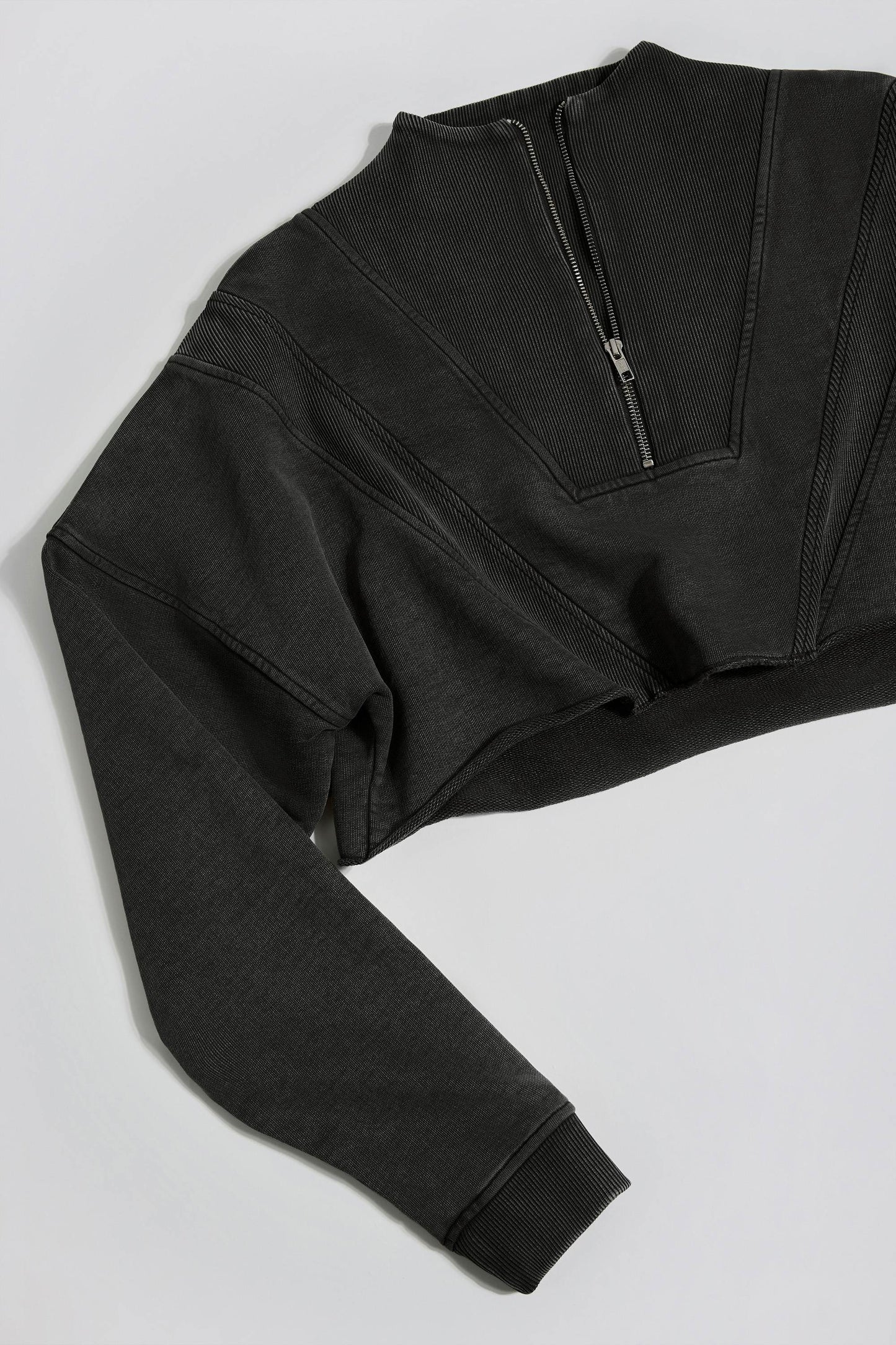 Rooted in comfort, built for movement. The perfect lightweight layer, this sweatshirt is crafted from naturally breathable cotton jersey with a lived-in acid wash effect and cut to a cropped silhouette with a ribbed panelled design that accentuates the perfectly oversized fit. It��s elevated with an embroidered logo and functional half-zip fastening for customisable coverage.