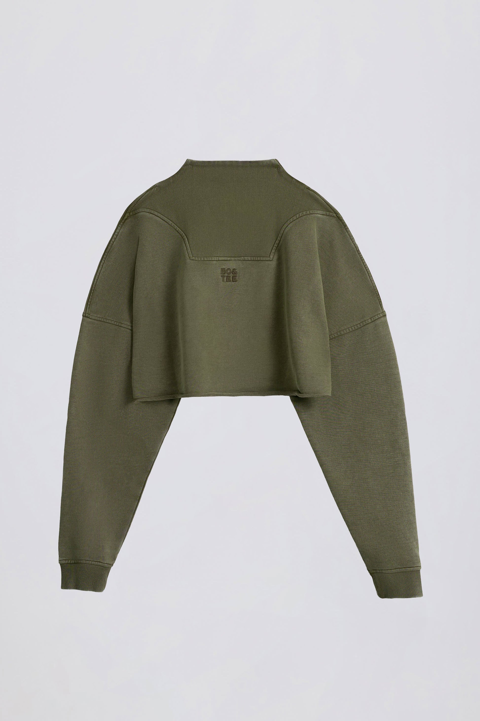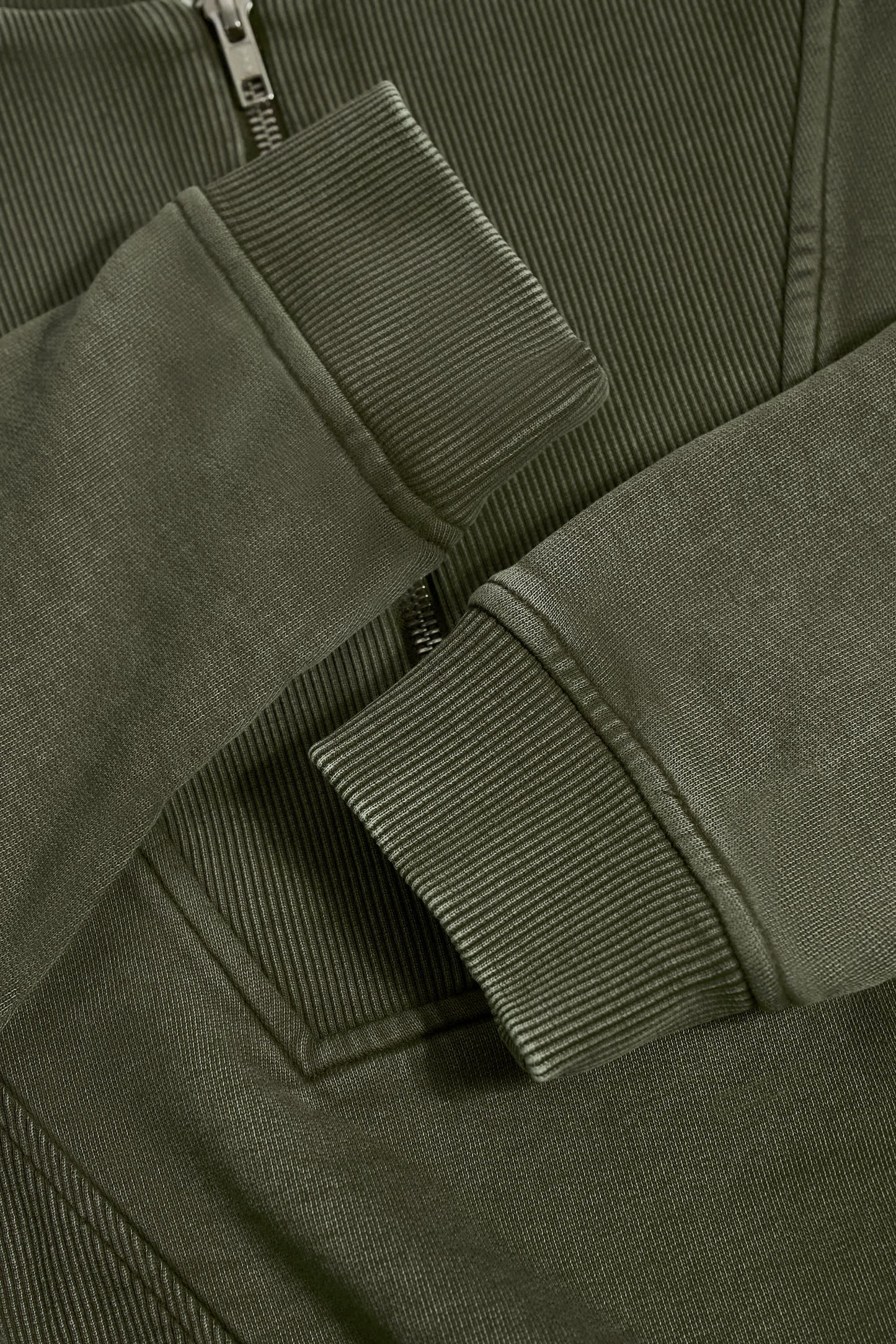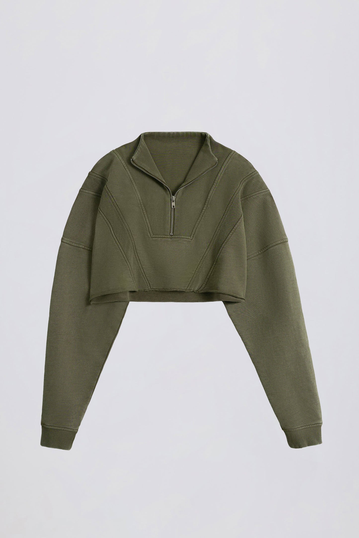 Rooted in comfort, built for movement. The perfect lightweight layer, this sweatshirt is crafted from naturally breathable cotton jersey with a lived-in acid wash effect and cut to a cropped silhouette with a ribbed panelled design that accentuates the perfectly oversized fit. It��s elevated with an embroidered logo and functional half-zip fastening for customisable coverage.