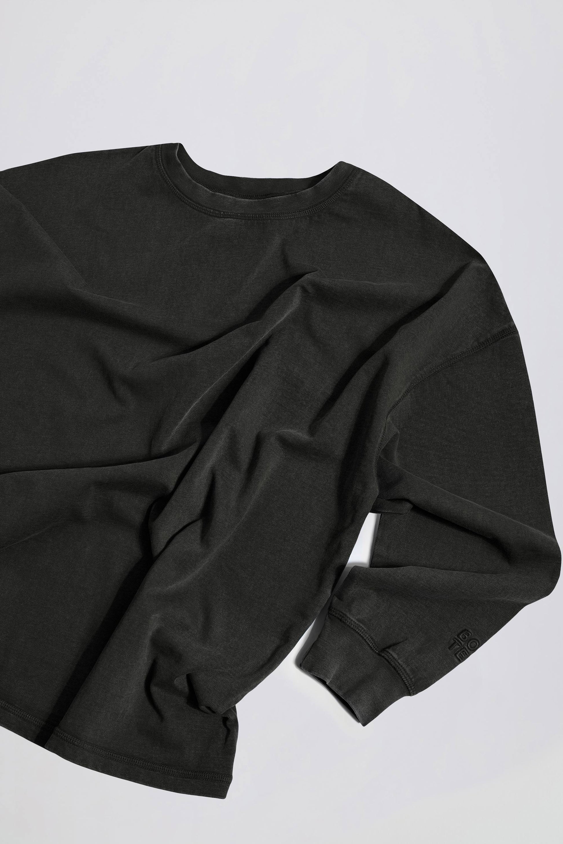 Acid Wash Long-Sleeve Oversized T-Shirt in Ash