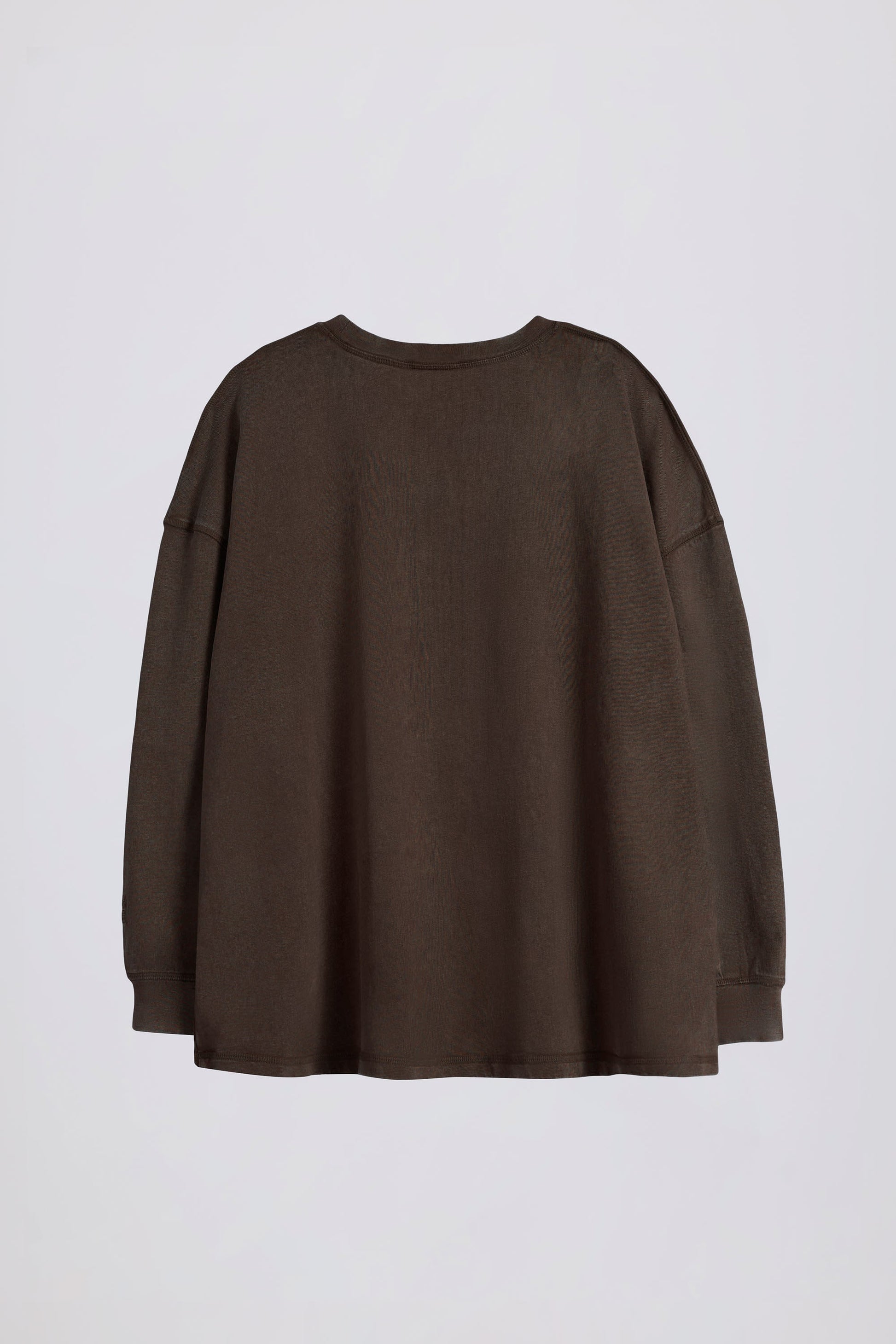 Acid Wash Long-Sleeve Oversized T-Shirt in Brown