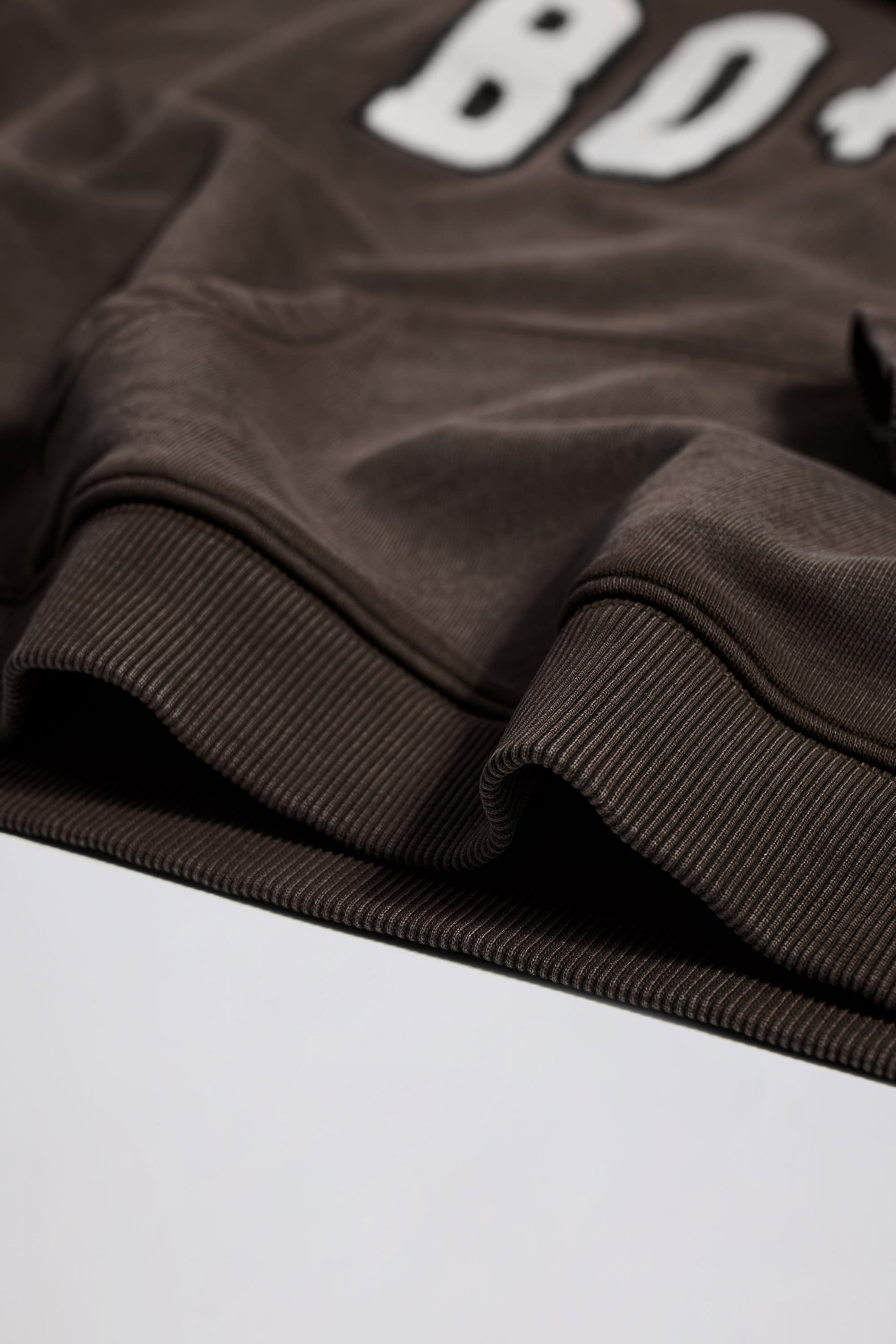 Find your balance. The perfect post-workout and off-duty layer, this hoodie is made from naturally breathable 395gsm cotton jersey with a custom acid wash effect for a super soft, lived-in and cosy feel. The signature oversized silhouette is elevated with dropped shoulders, a kangaroo pocket at the front, and an appliqu��d chenille logo inspired by classic varsity styles.?