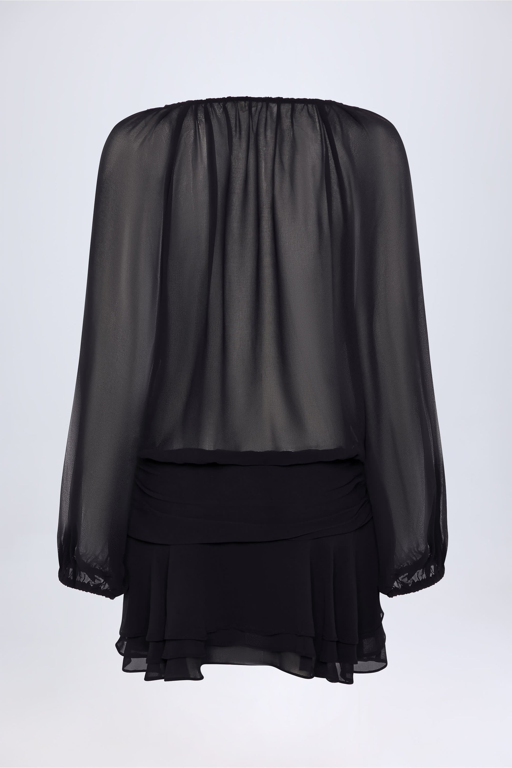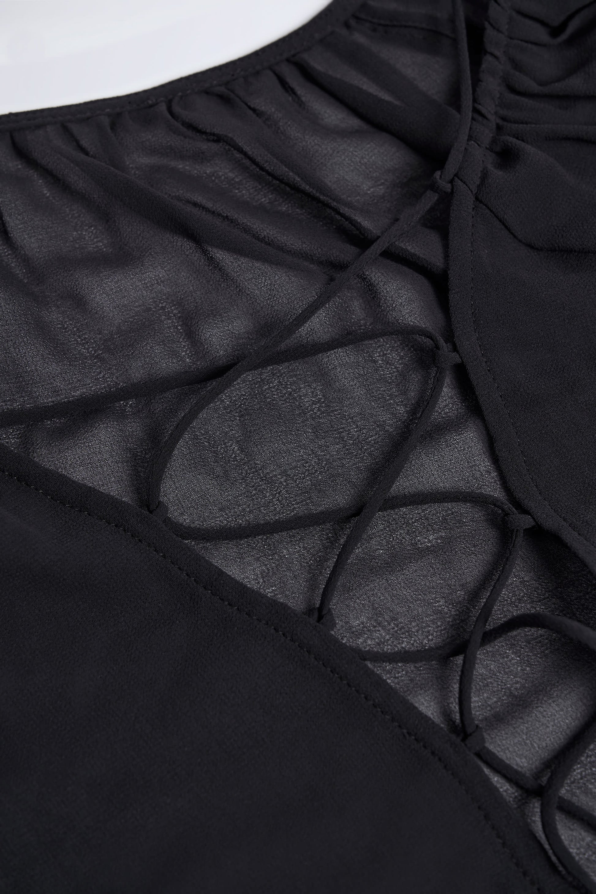 Lace-Up Balloon-Sleeve Mini Dress in Black