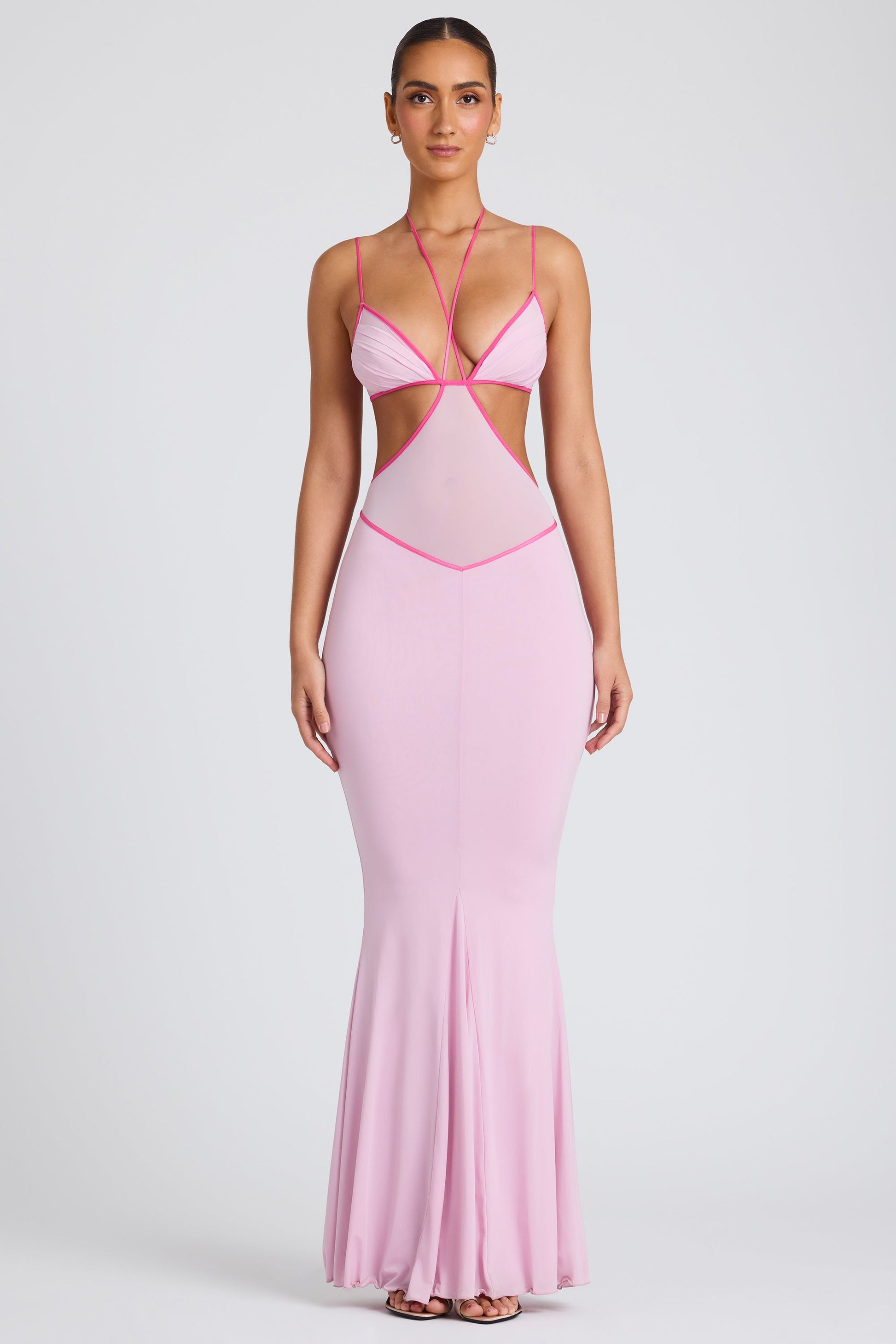 Contrast Binding Cut Out Evening Gown in Soft Pink