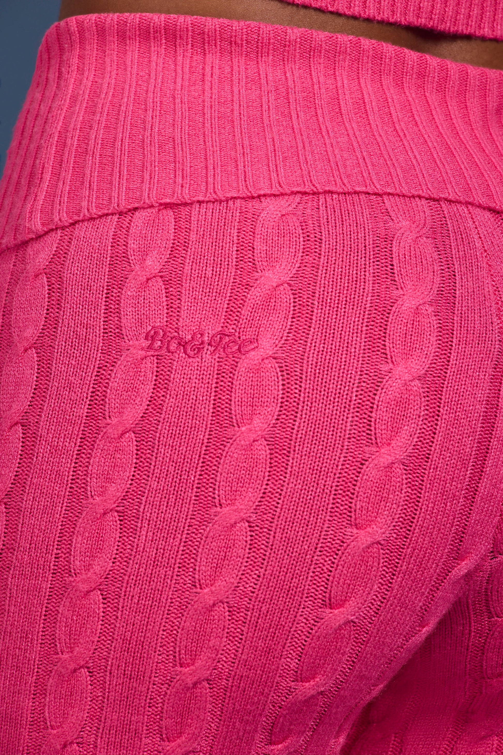 Cable-Knit Flared Trousers in Hot Pink