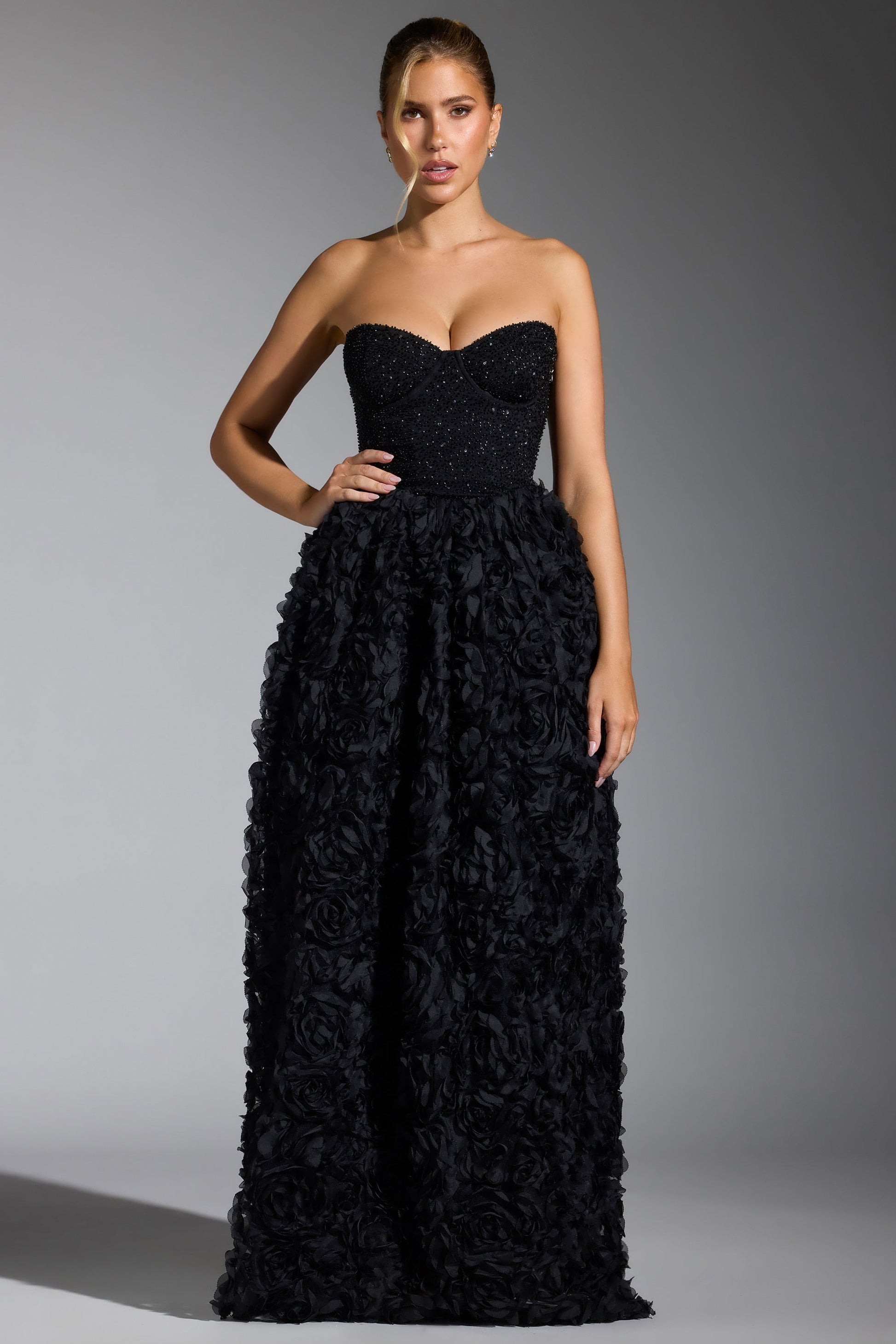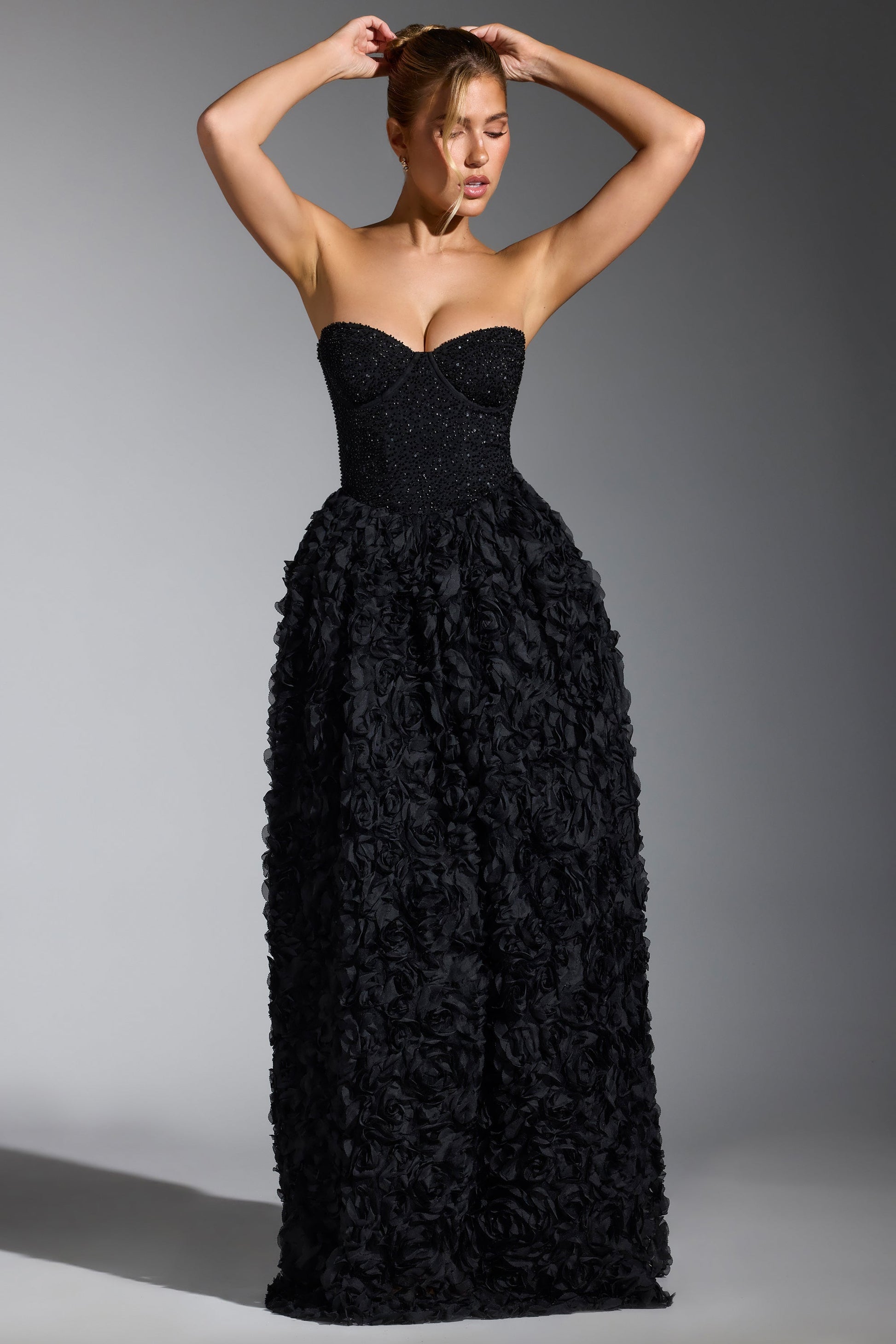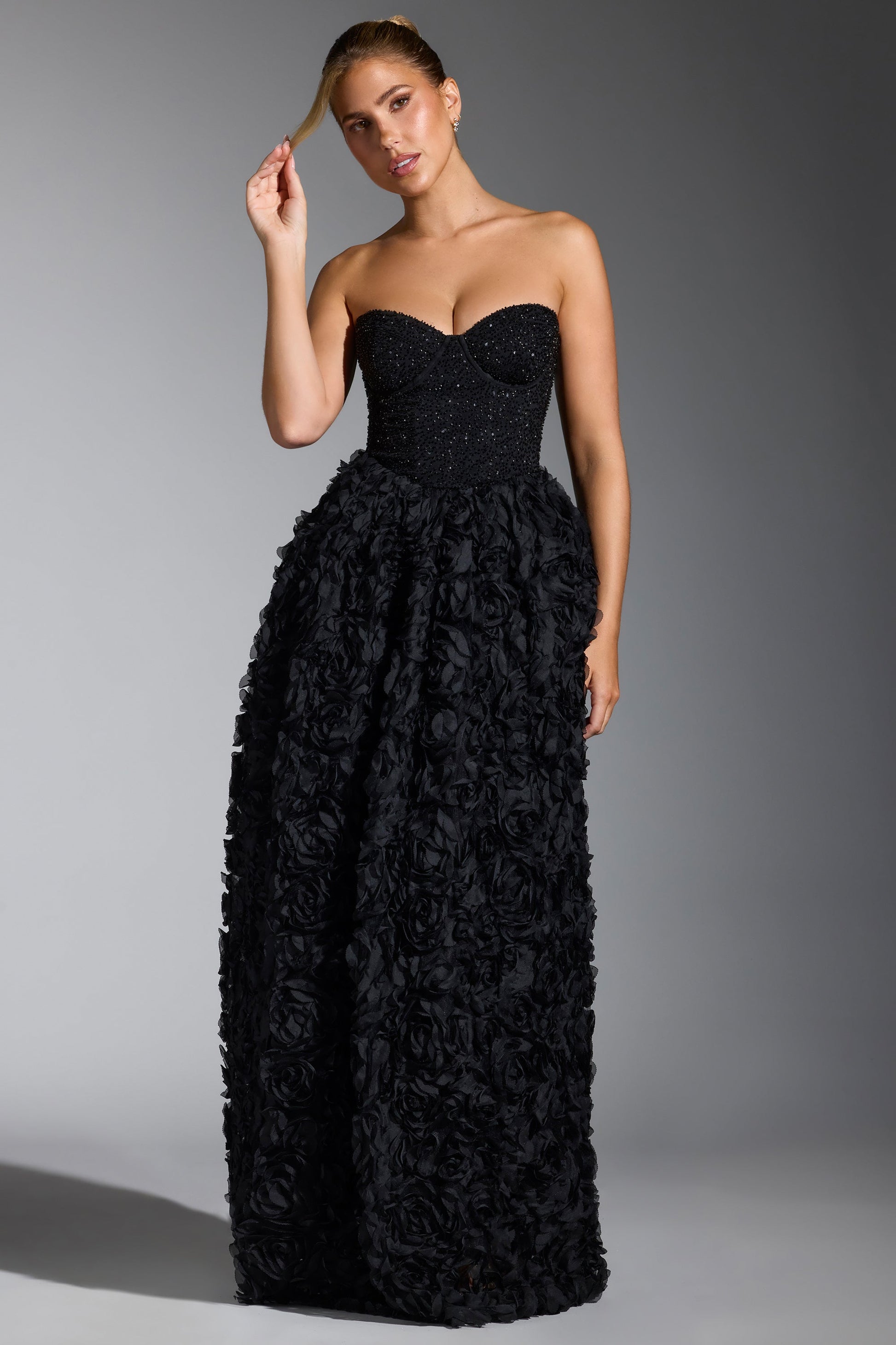 Embellished Floral-Appliqu�� Corset Gown in Black