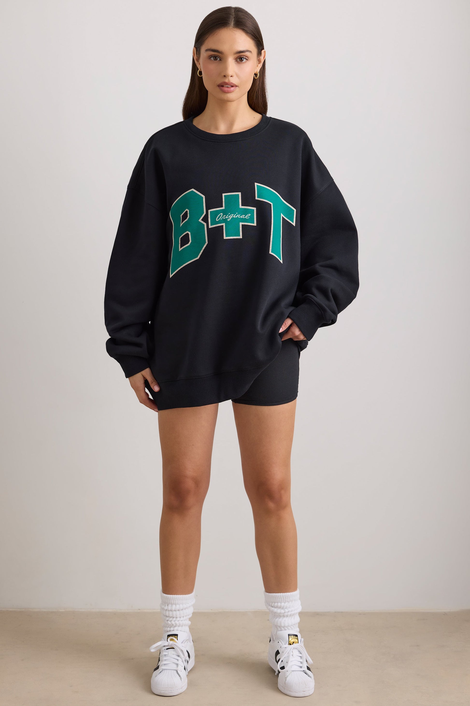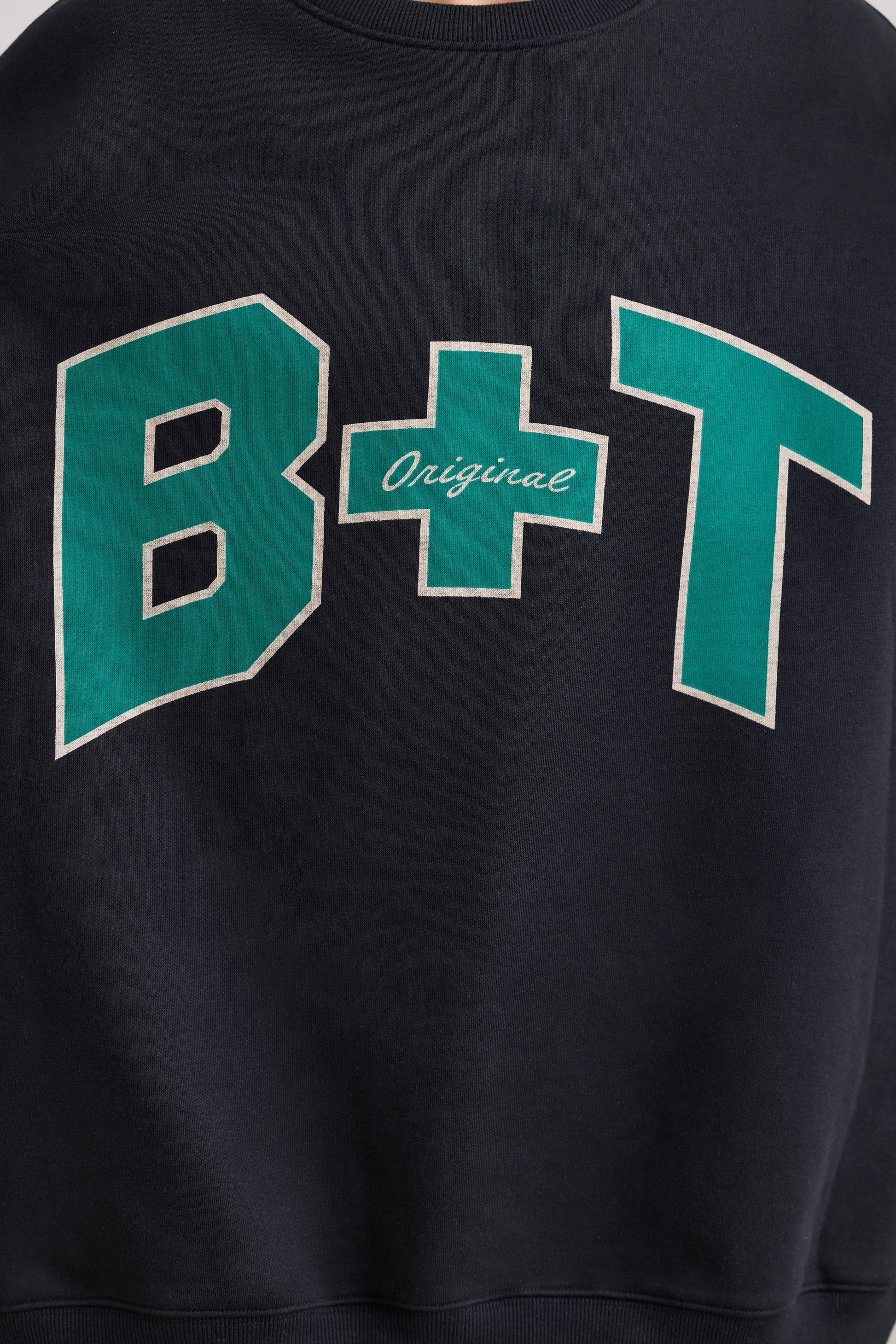 Effortless, laidback comfort. Designed in our premium cotton fabric with an ultra-soft fleece lining, our classic crew neck sweater has a retro-inspired design with dropped shoulders and oversized sleeves. Bo+Tee��s relaxed sweatshirt is complete with statement branding across the chest as well as thick, ribbed detailing on the neckline, hem, and cuffs.