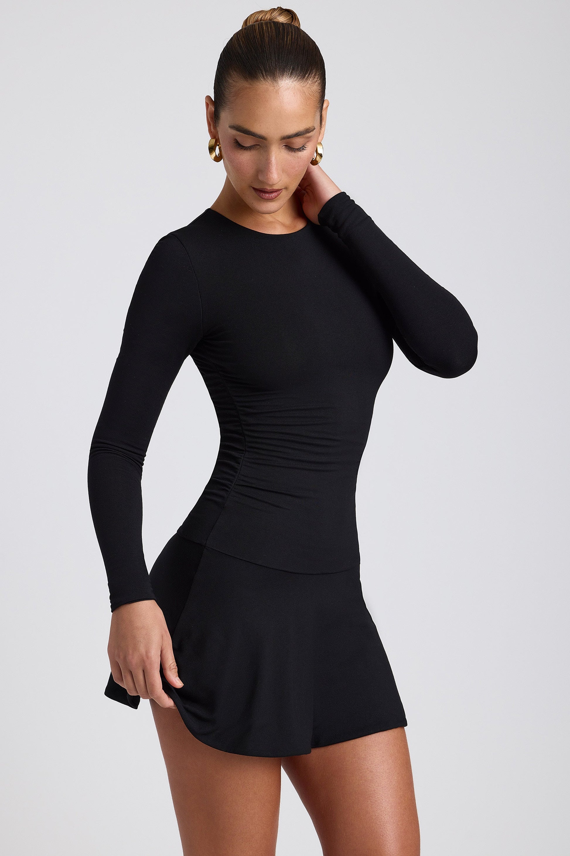 Modern minimalism with a playful twist. The Coco dress is crafted from our signature buttery soft jersey fabric with TENCEL™ Modal fibres, sourced sustainably from beechwood trees. The fitted drop-waist silhouette is enhanced with figure-flattering ruching and a flared mini skirt.