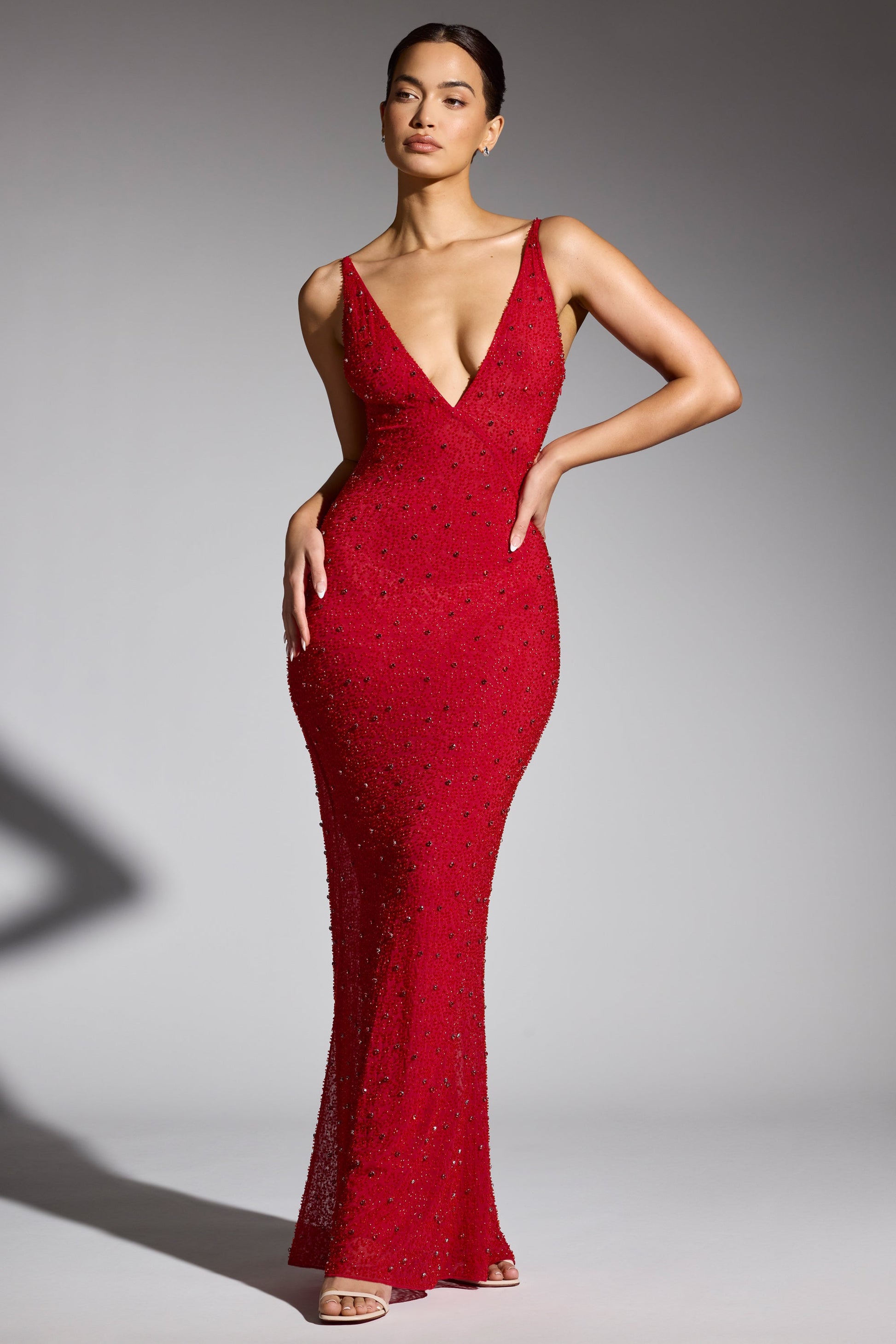 The Colmar evening gown is a sensual design perfect for prestigious events. Cut from our premium 20D mesh fabric, Colmar is available in two timeless colorways and features all-over sparkling bead and crystal adornments. This gorgeous gown showcases a plunging V neckline, sexy strappy back, and ruching at the rear that accentuates your shape.