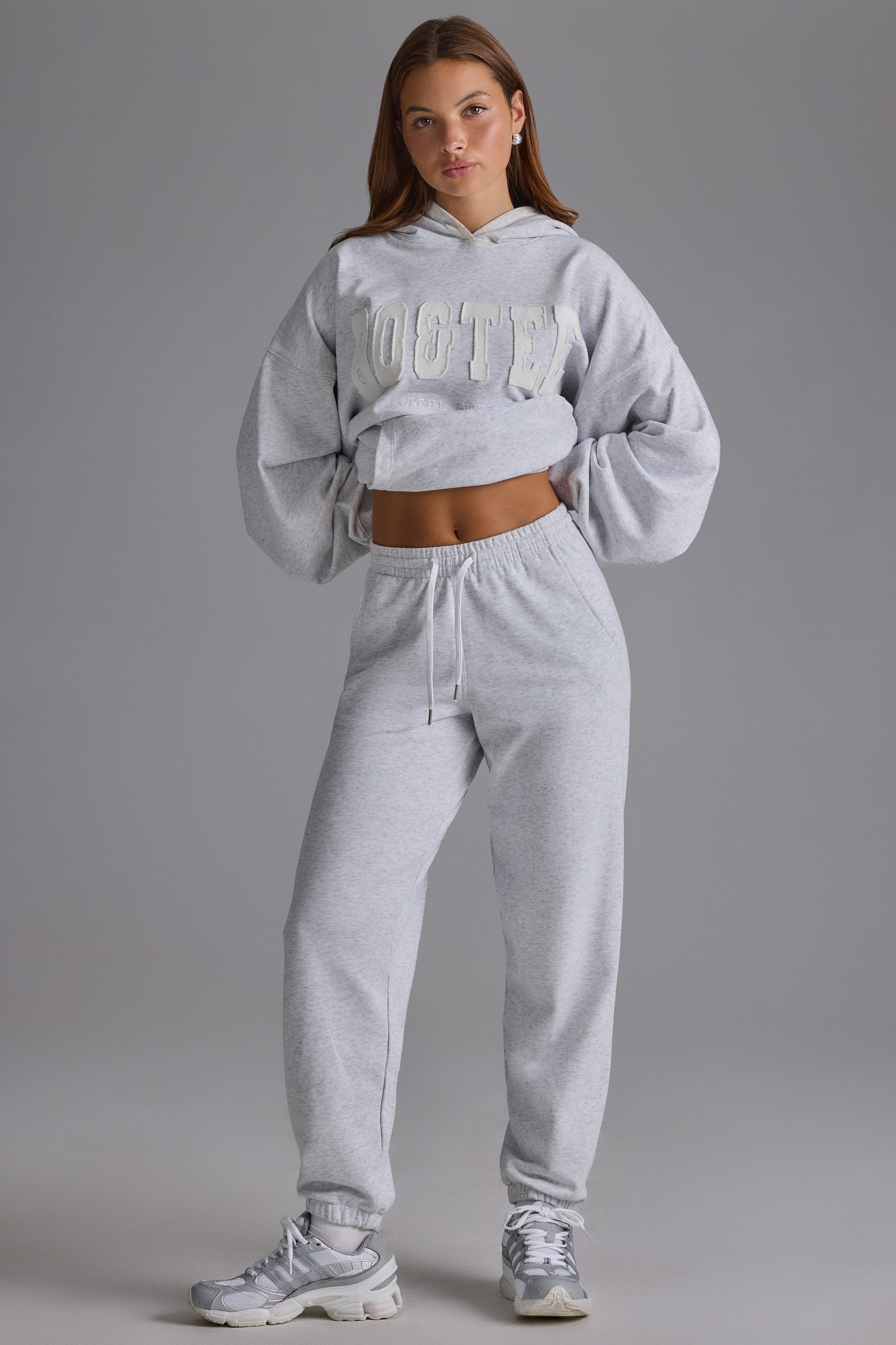 Petite Relaxed Mid-Rise Joggers in Grey Marl