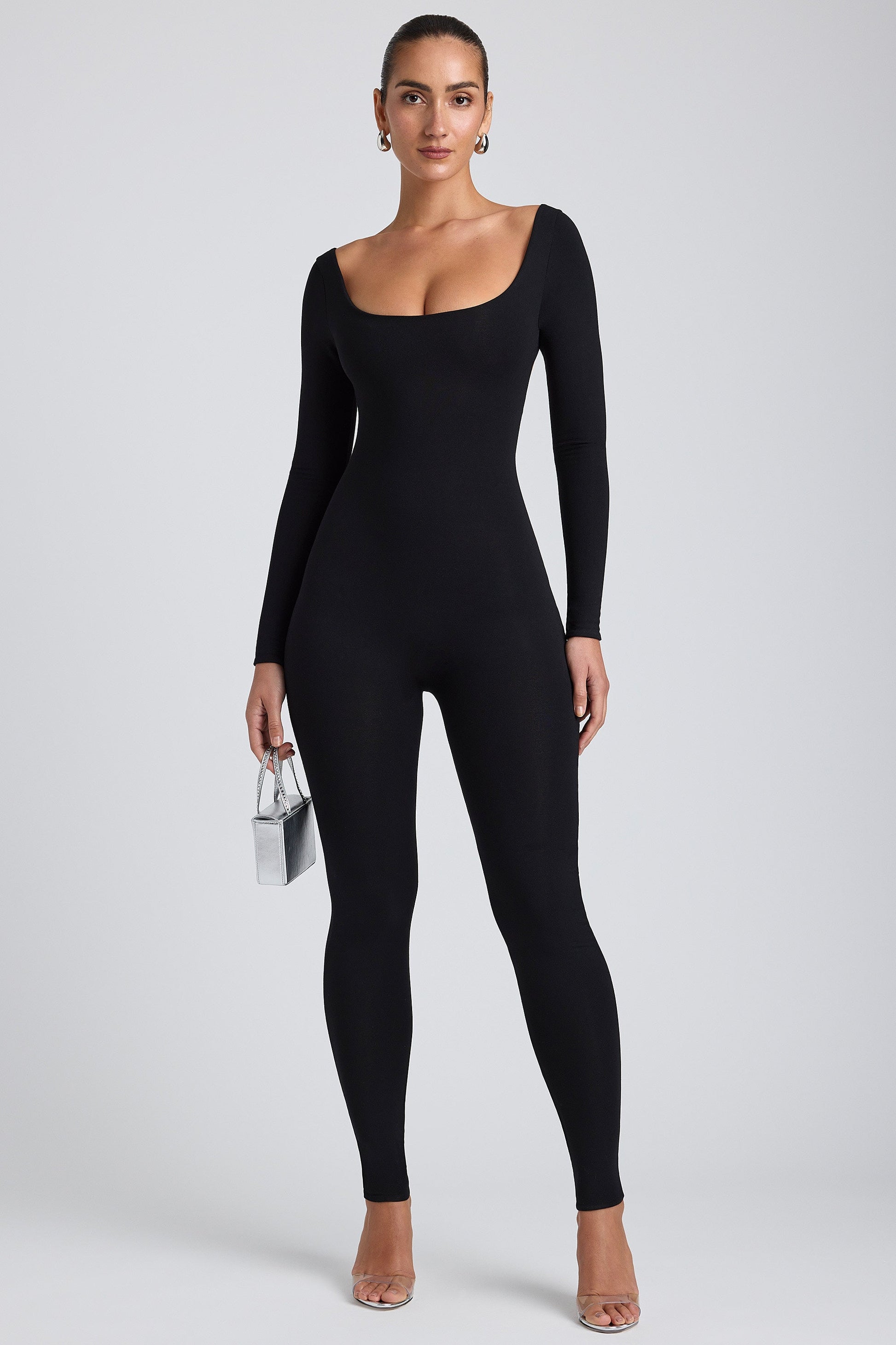Modal Tall Scoop-Neck Cross-Back Jumpsuit in Black