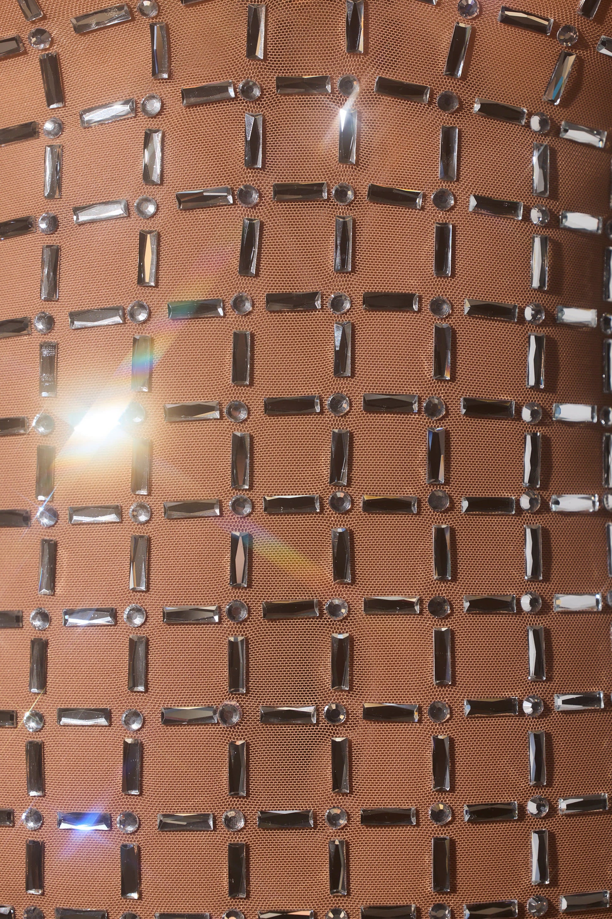 Modern glamour meets elevated design with the Ilana mini dress. A semi-sheer design crafted from premium 40D power mesh, it��s cut to a figure-skimming A-line silhouette and saturated with custom HOTFIX embellishments arranged in a grid-like pattern for high-impact sparkle. It features a keyhole cut-out at the front mirrored with an open back and darts at the bust for enhanced shaping.