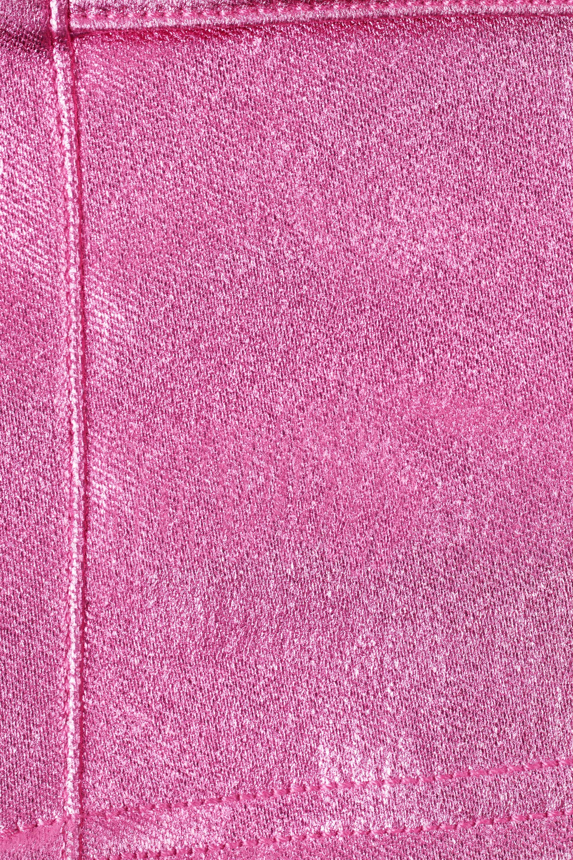 Metallic Denim Mid-Rise Cargo Mini Skirt in Deep Pink