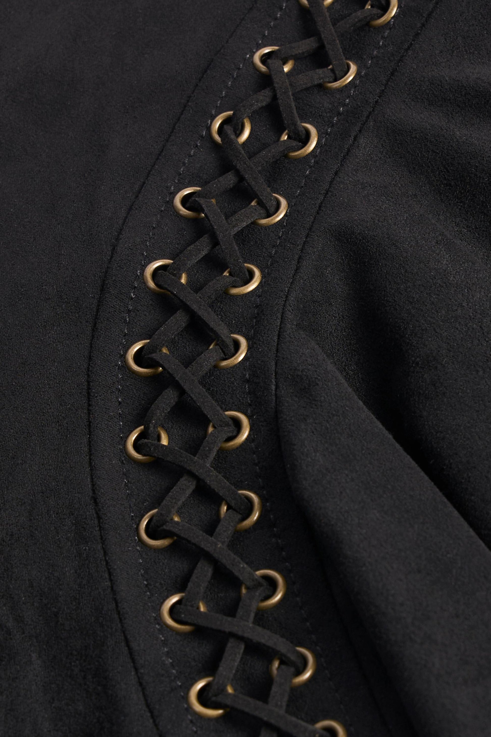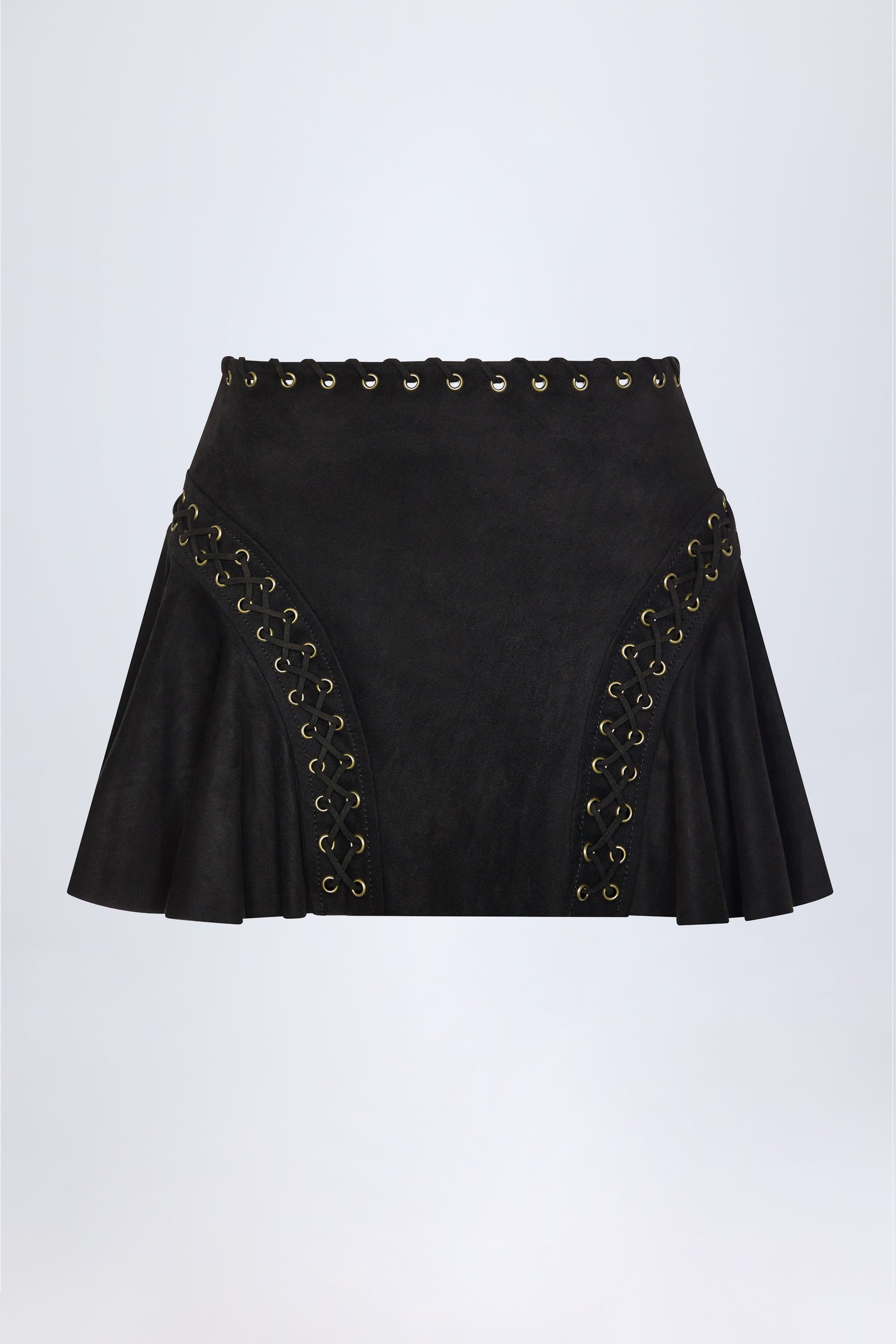 Fusing country influences with effortless glamour, the Jalsa mini skirt is elevated with decorative eyelets and contrasting lace-up detailing, inspired by a classic Western aesthetic. It��s crafted from soft-touch faux suede to a universally flattering mid-rise silhouette and features flared side panels for added movement.