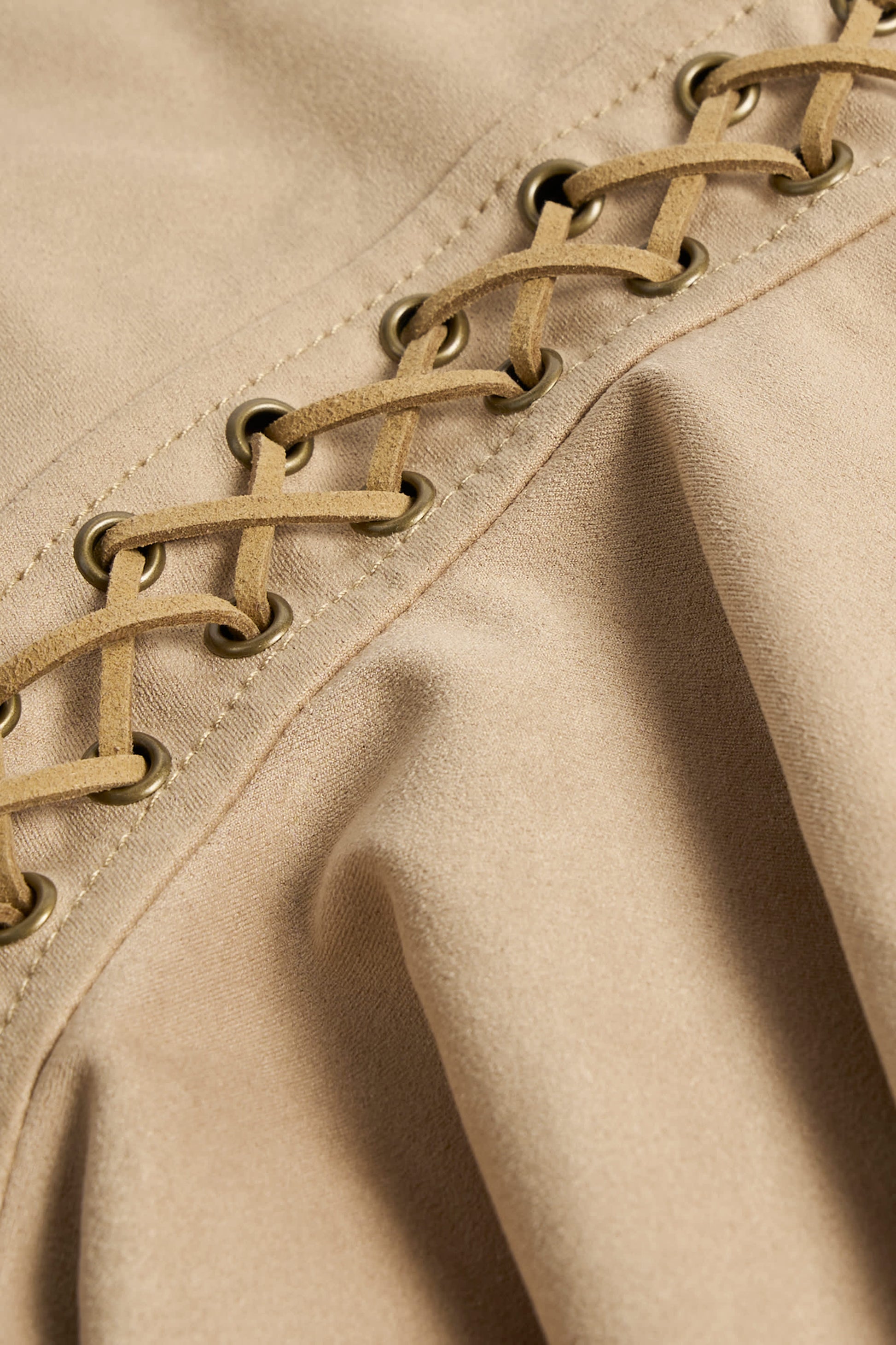 Fusing country influences with effortless glamour, the Jalsa mini skirt is elevated with decorative eyelets and contrasting lace-up detailing, inspired by a classic Western aesthetic. It��s crafted from soft-touch faux suede to a universally flattering mid-rise silhouette and features flared side panels for added movement.
