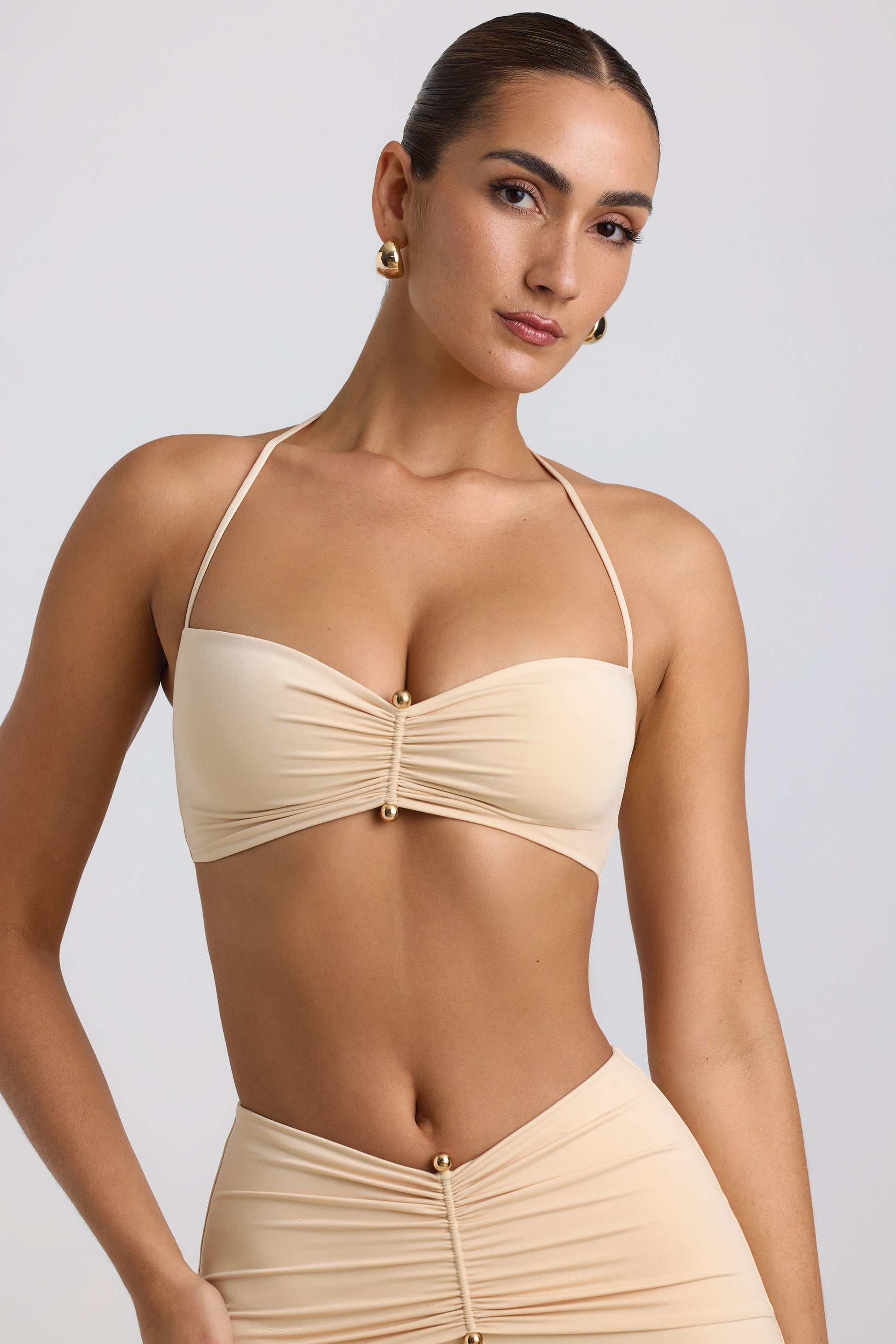 Slinky Jersey Hardware Detail Halterneck Bralette in Buttercream