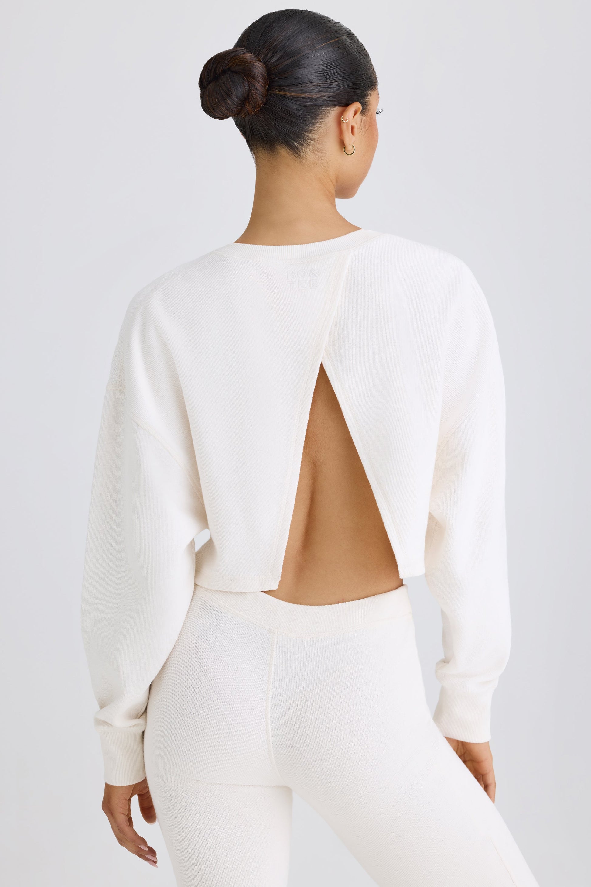 Crew-Neck Open-Back Cropped Sweatshirt in White