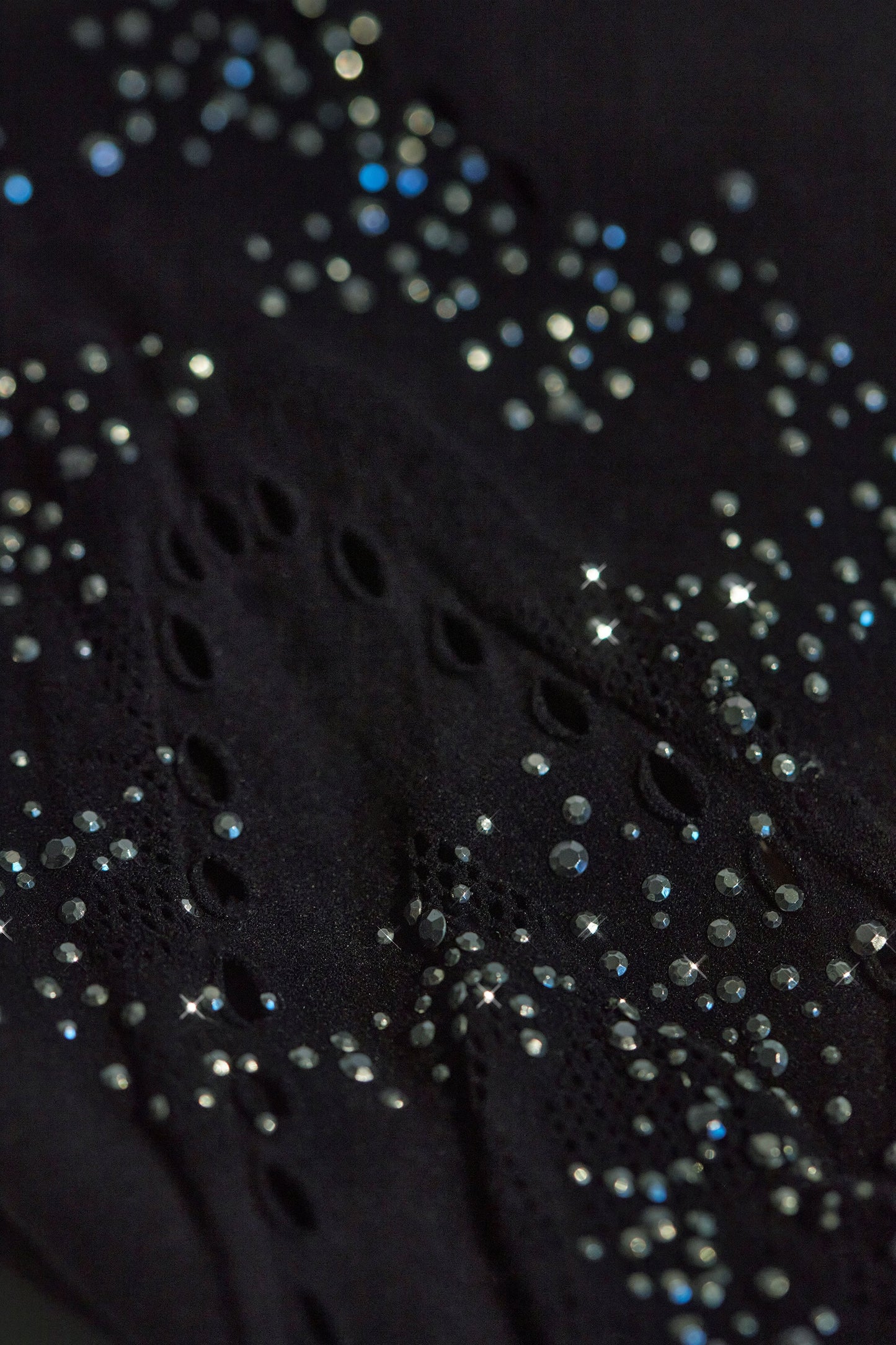 Create amplified festival looks with the Joni mini skirt. A coordinating piece for experimental outfits, it��s crafted from our seamless knit fabric that sculpts to your figure for a supportive fit. Designed for a mid-rise fit, it��s adorned with delicate lace panels and laser-cut details that enhance the contoured effect and perfectly placed?rhinestone embellishments for a sparkling touch.