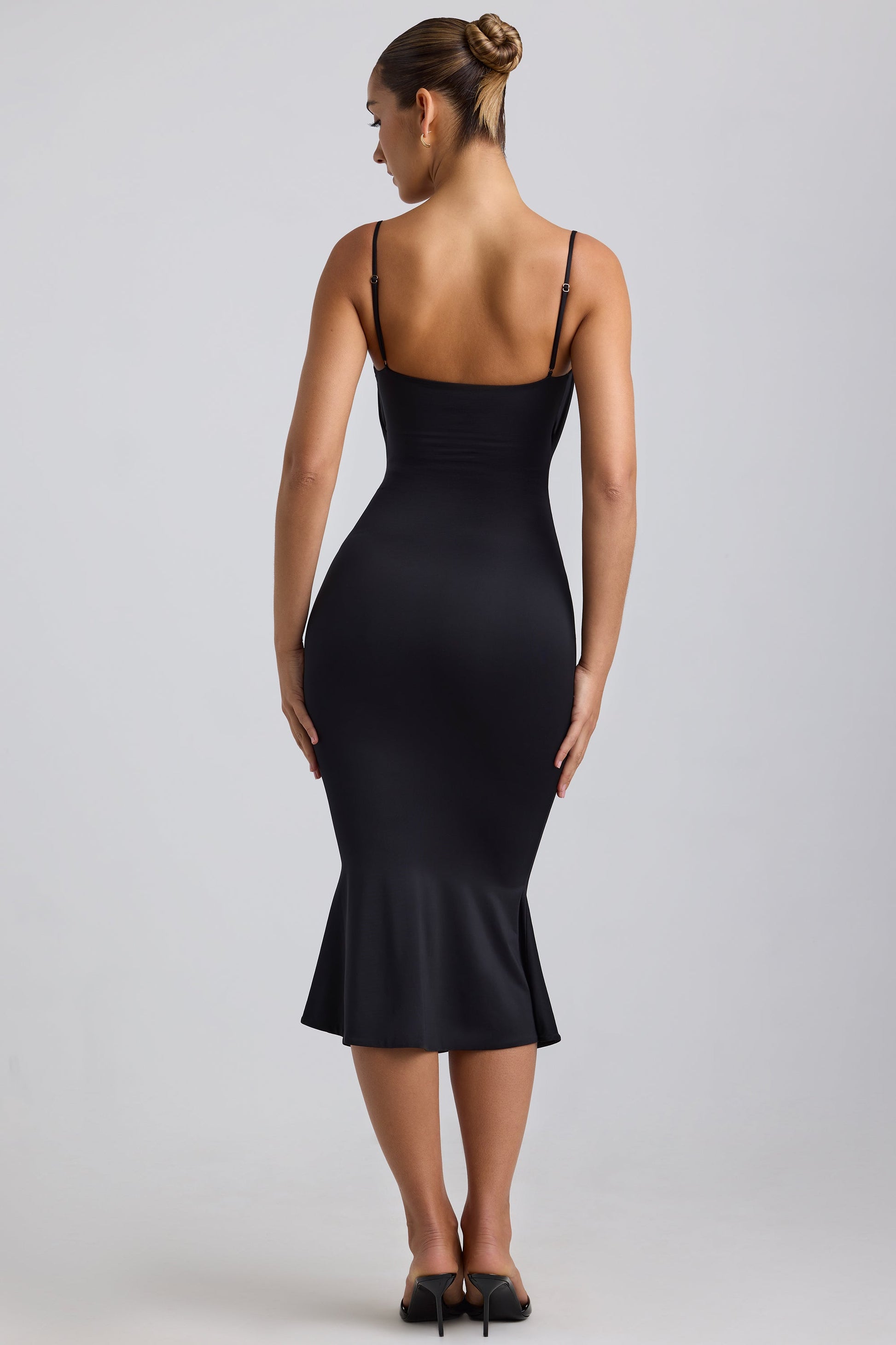 Slinky Jersey Ruched Cut-Out Midaxi Dress in Black