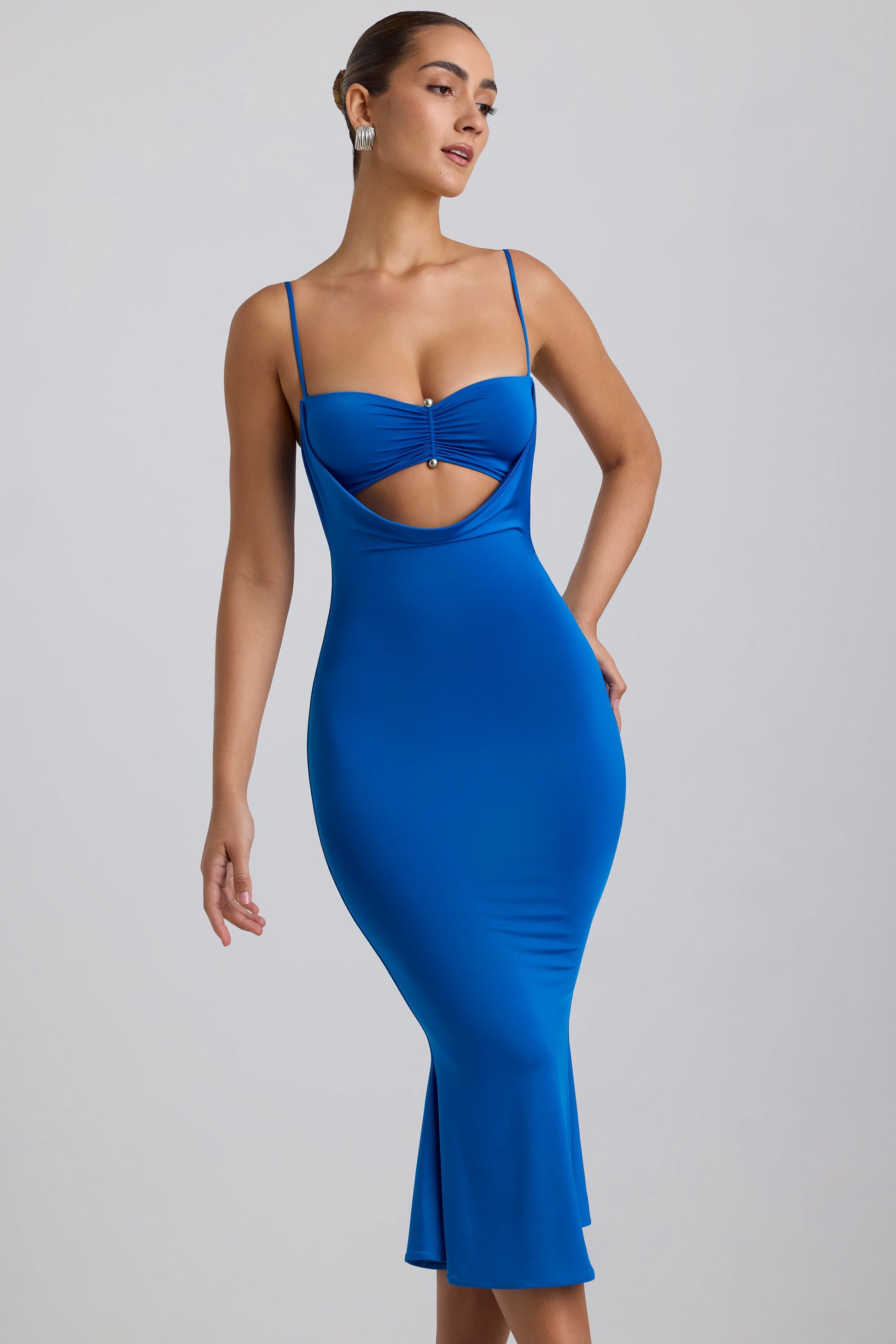 Slinky Jersey Ruched Cut-Out Midaxi Dress in Cobalt Blue