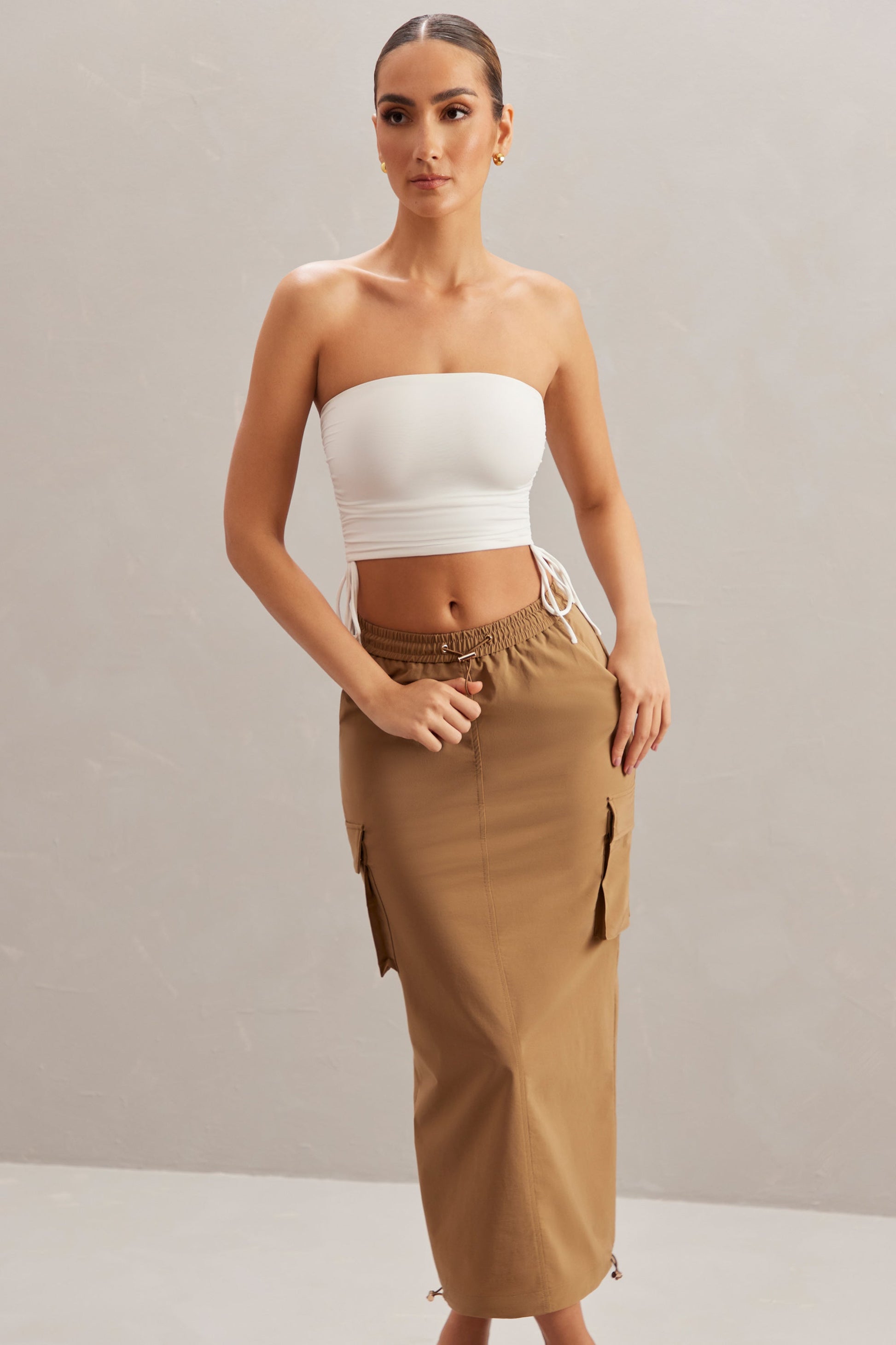 A new season essential, the Kirra cargo maxi skirt is a must have piece to enhance your everyday wardrobe. This low rise maxi skirt features an ultra comfortable elasticated waistband with functional toggle that allows you to perfect your fit. Falling to an on trend loose fit, the Kirra maxi skirt has classic cargo toggles at the hem, functional side pockets and a narrow slit on the reverse that allows for ease of movement. Functional and flattering, Kirra is a statement style for on trend dressing this season.