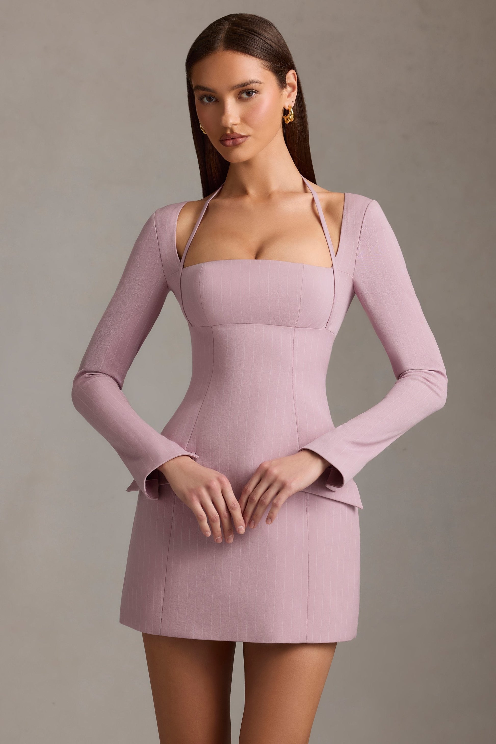 Pinstripe Structured A-Line Mini Dress in Mauve