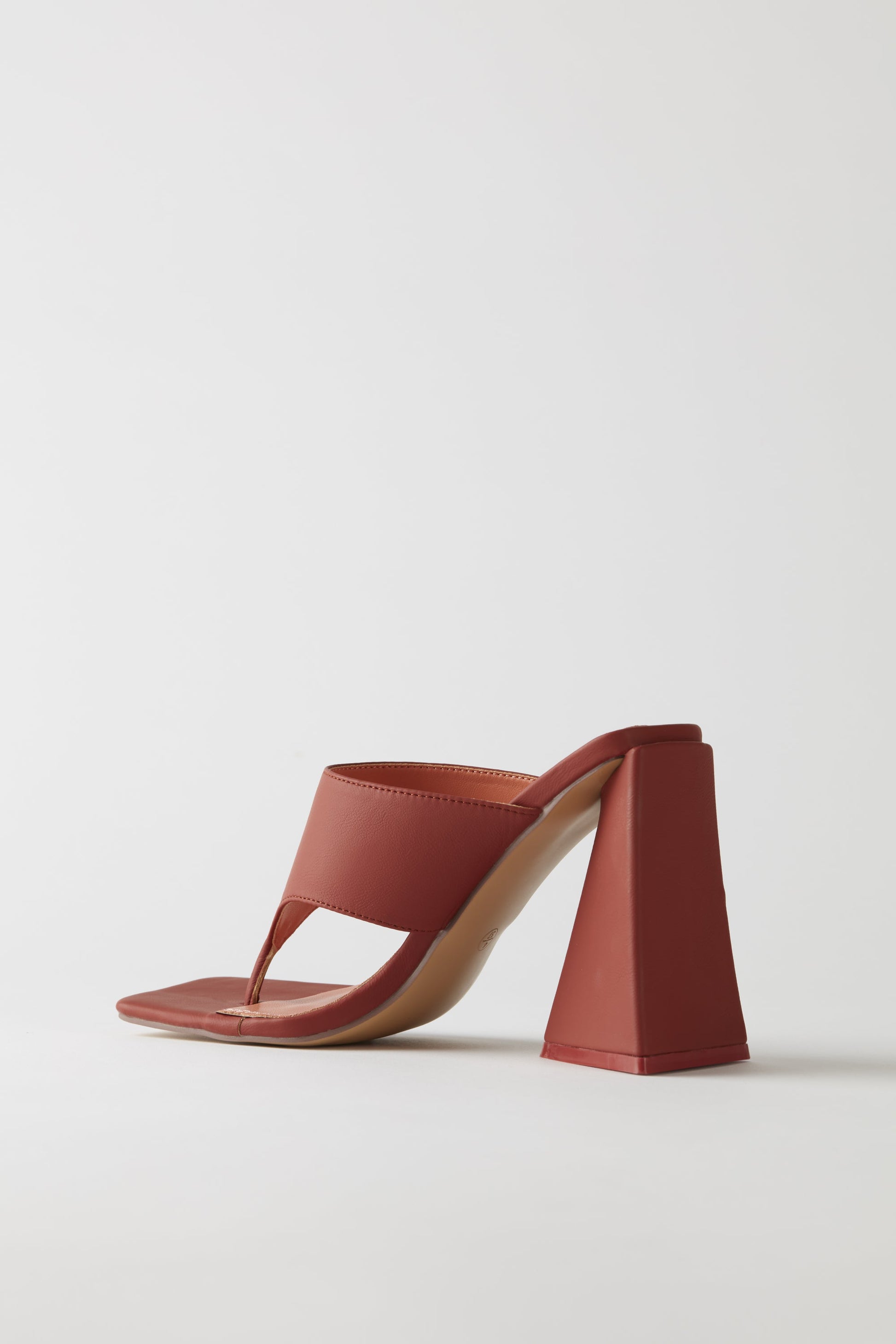 Fall in love with our geometric block mules. Made from smooth faux leather, these mules feature an open square toe and toe post design. The chunky strap and triangle block heel, create a statement look. Slip these heels on with an off the shoulder mini dress for a ��fit with maximum impact! You��ll be irresistible, babe!
