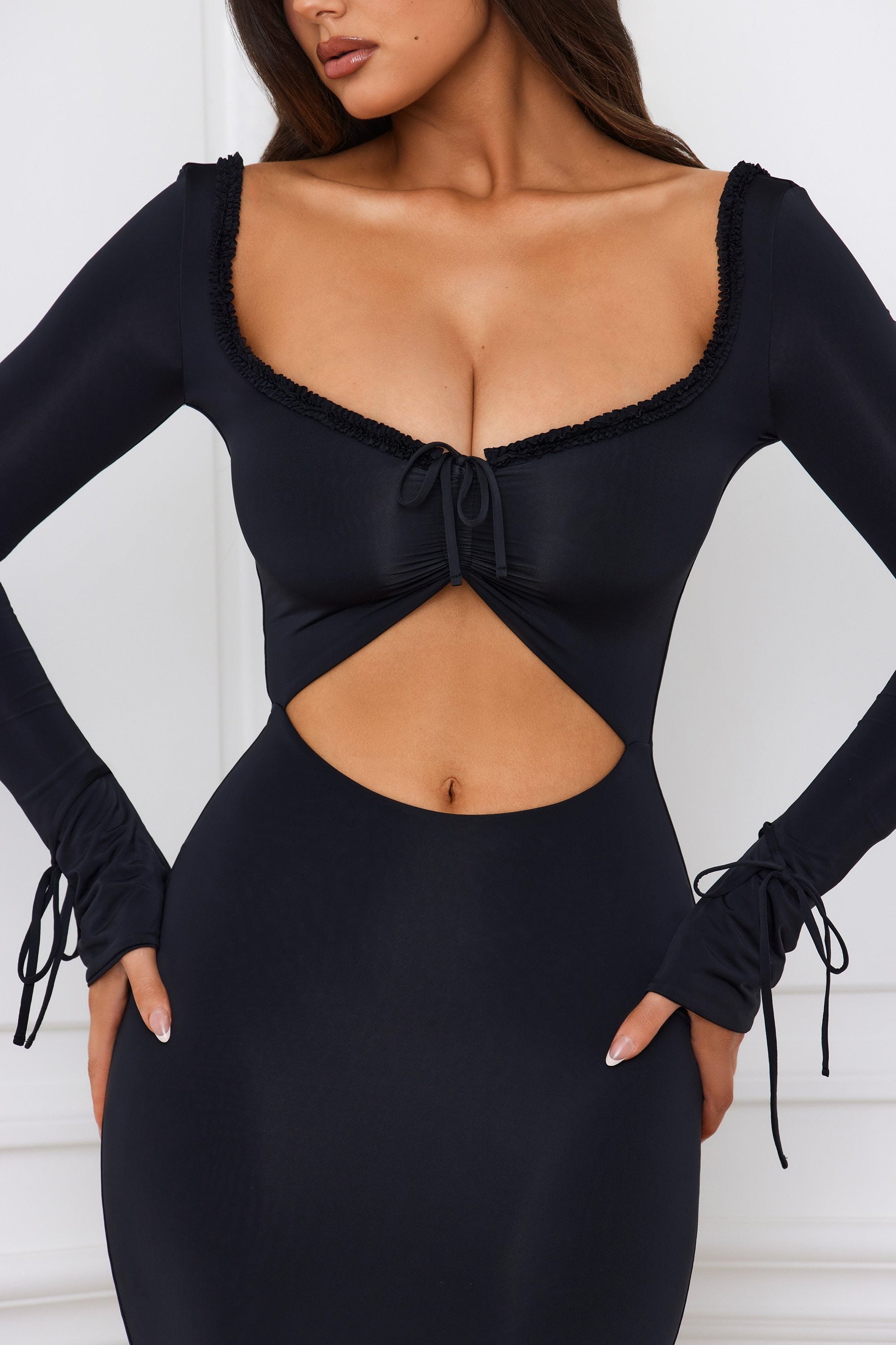 Ruffle-Trim Cut-Out Maxi Dress in Black
