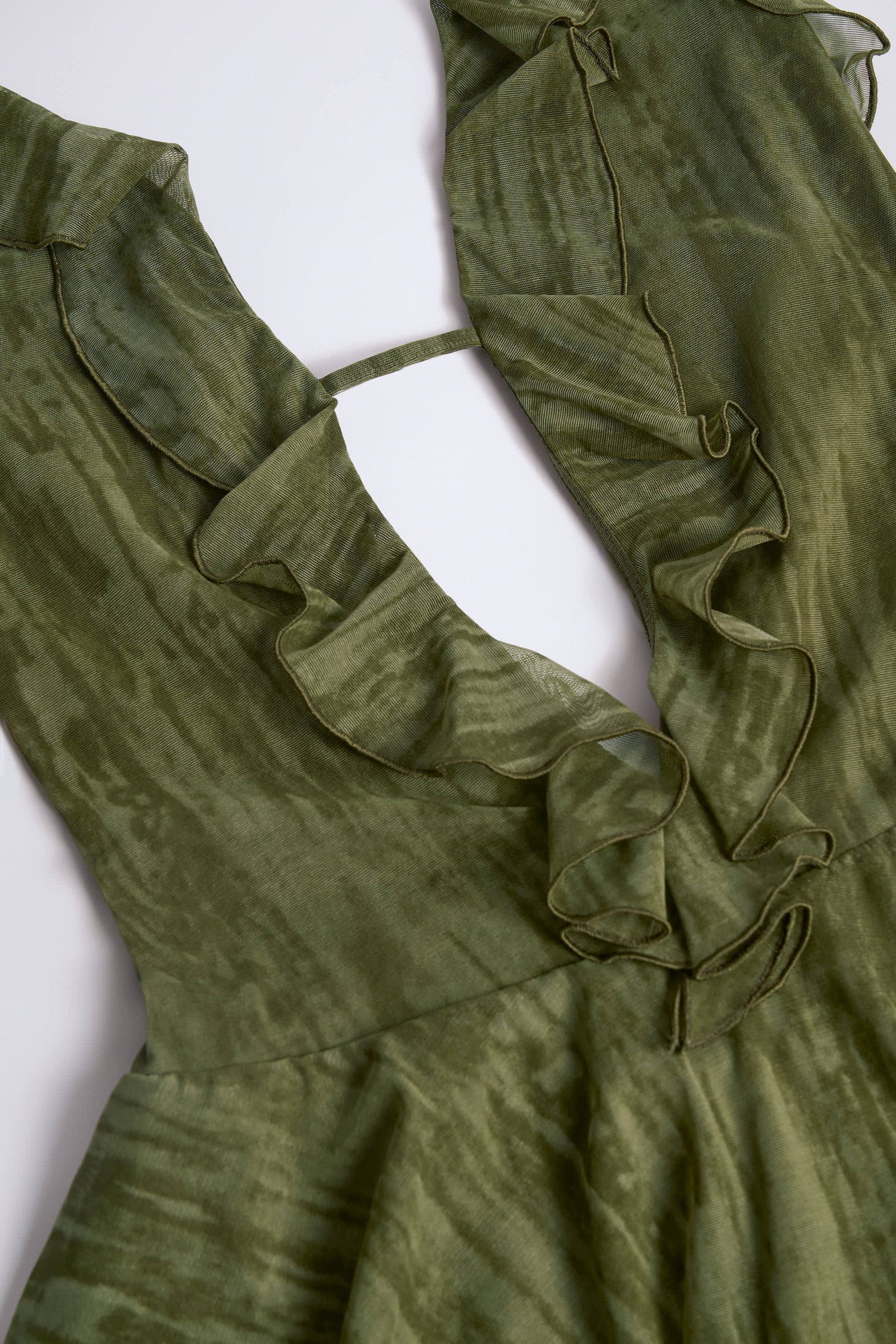 Made for the mainstage. A head-turning look made for all your summer plans, the Morgaine playsuit is crafted from premium, lightweight mesh with a custom textured pattern. It��s cut to a figure-skimming A-line silhouette with a ruffle-trimmed plunge neckline, low open back and a double-layered ruffle hem.?