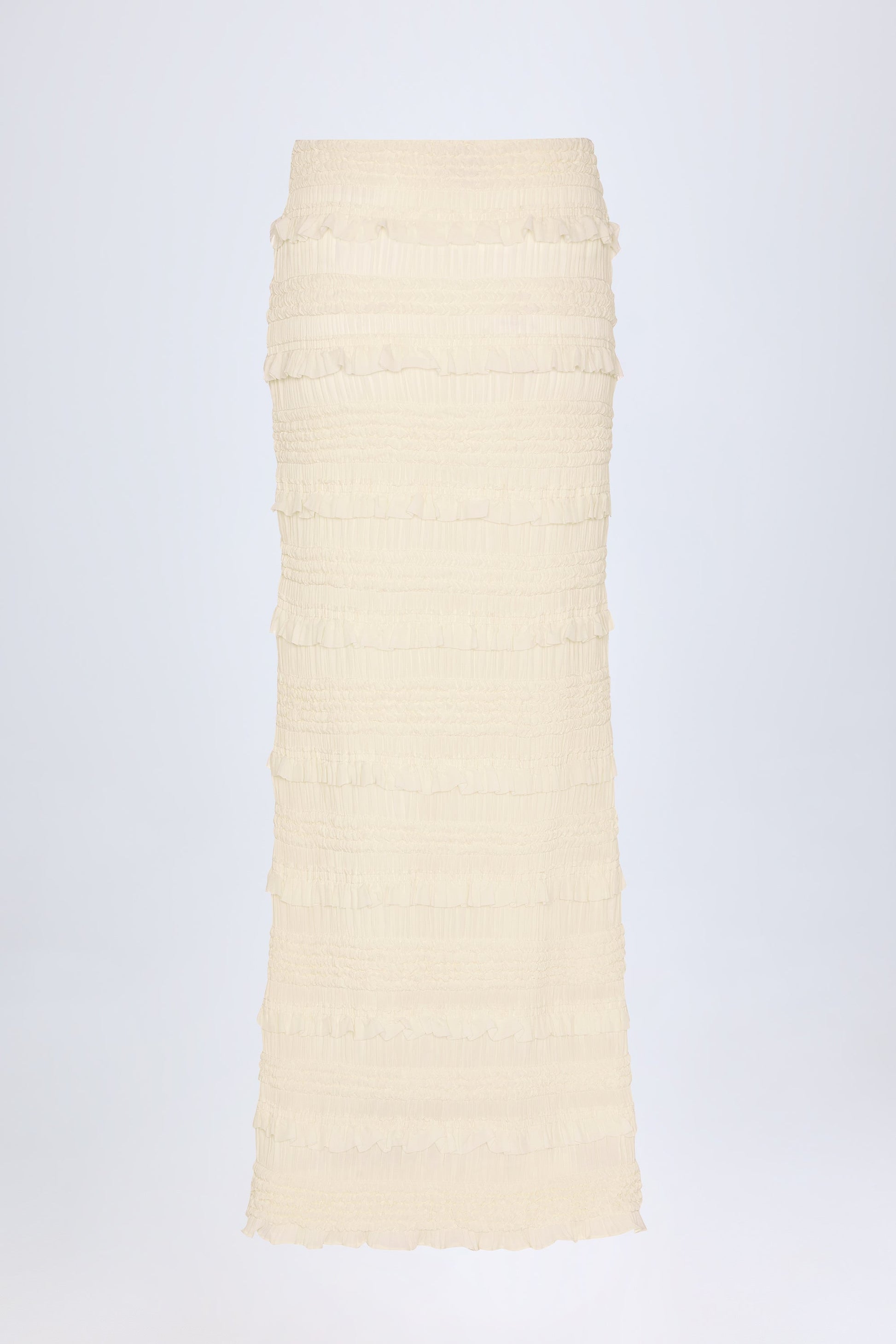 Ruffled Mid-Rise Maxi Skirt in Ivory