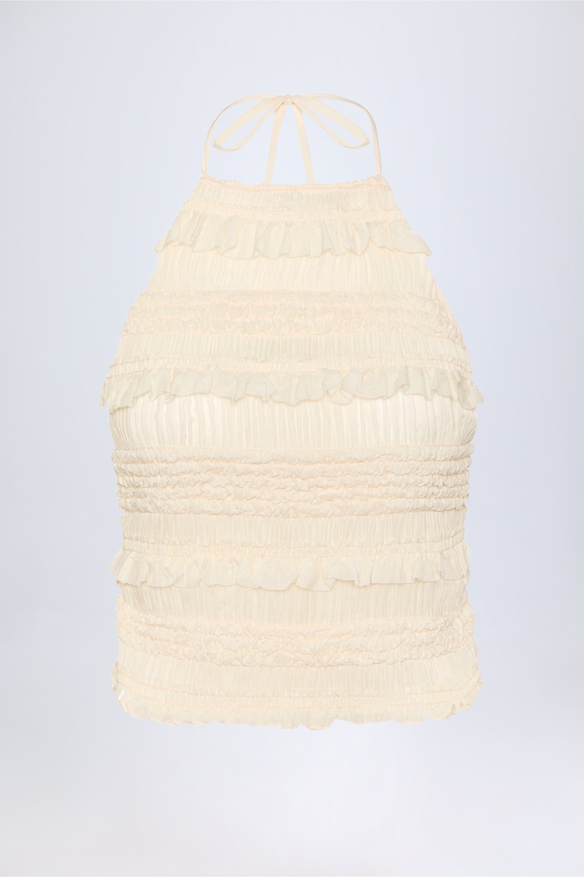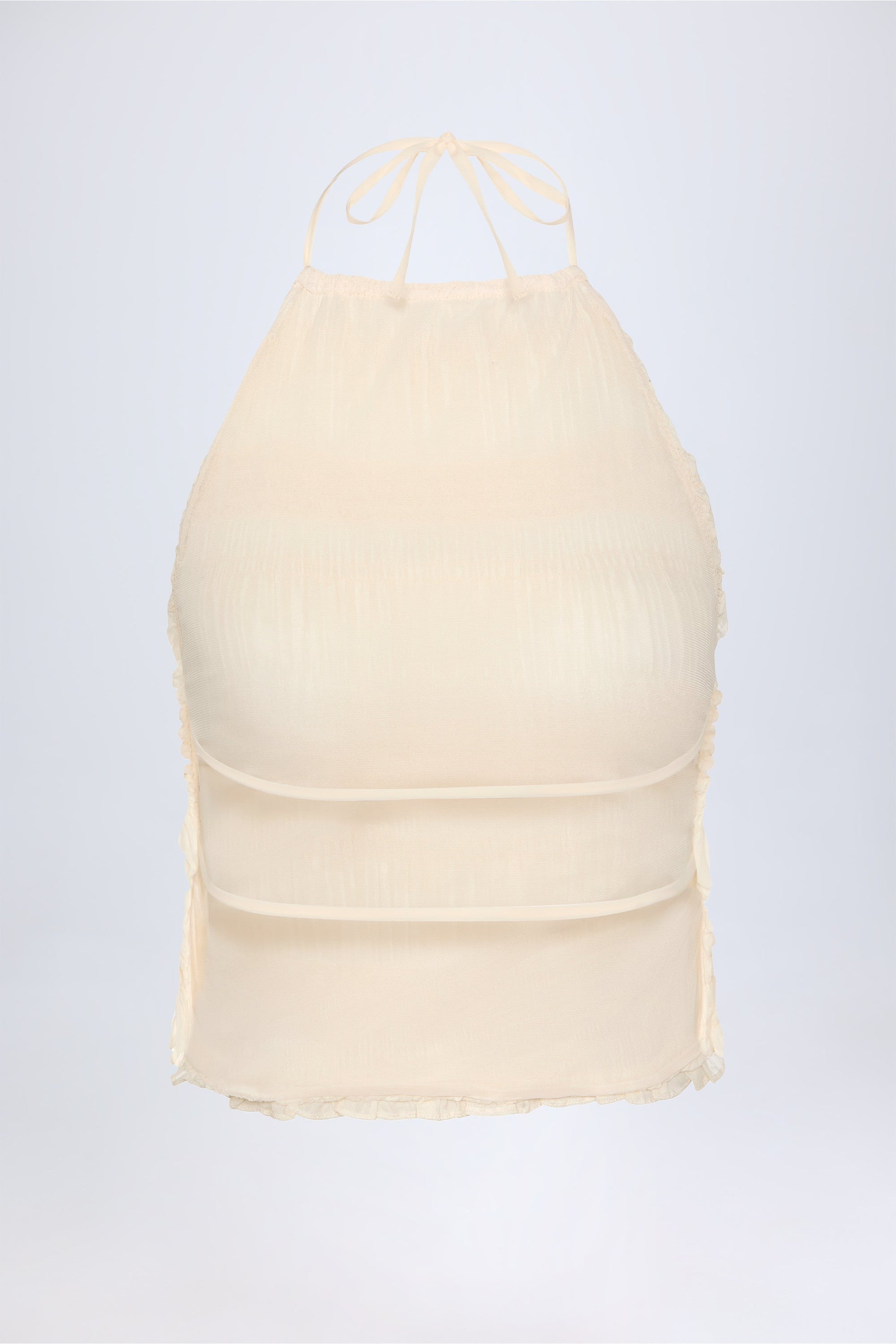 If you love details as much as we do, you��ll love the Natesha top. It��s crafted from our premium, custom-designed textured mesh elevated with cutesy ruffle trims for a statement look. Cut to a high-neck silhouette, it features an open back with two slender straps and a halterneck tie fastening for your perfect fit.