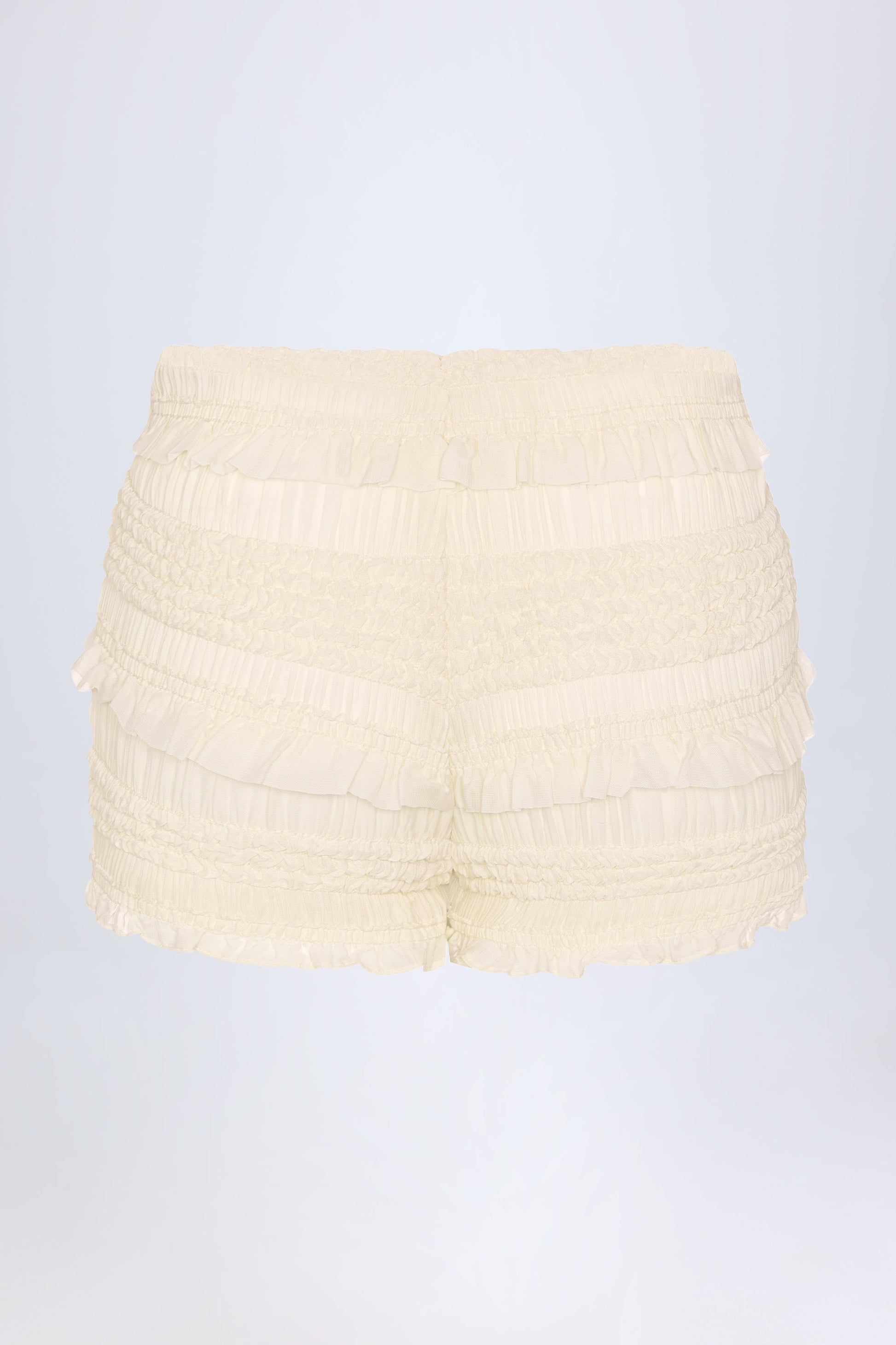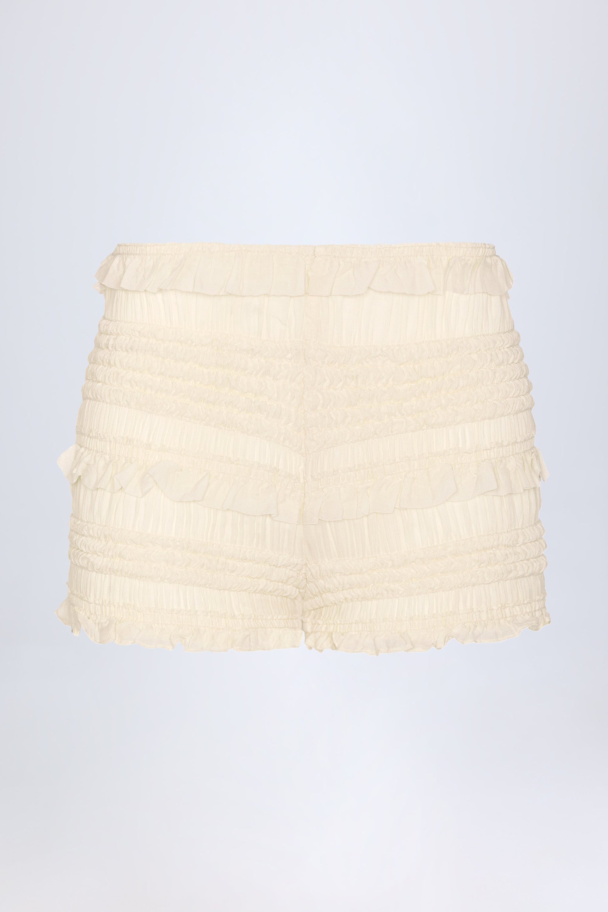 Ruffled Mid-Rise Shorts in Ivory