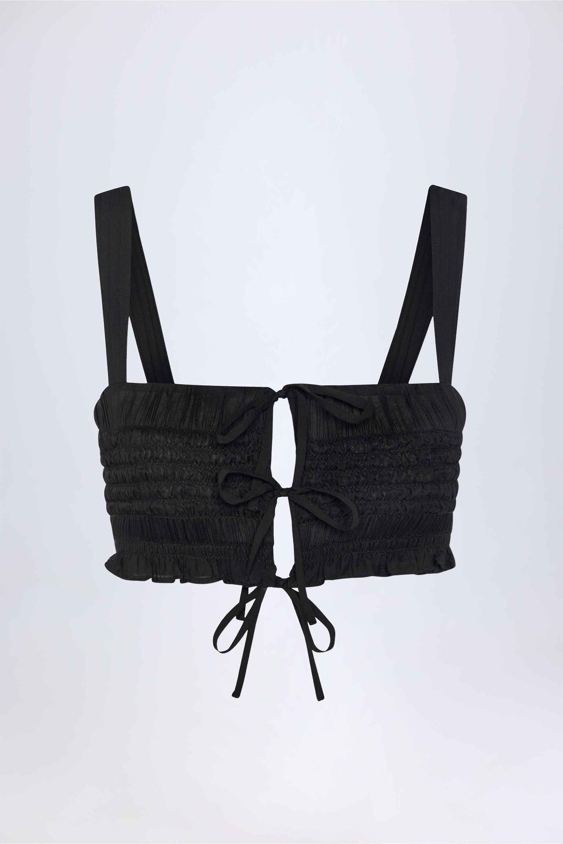 Sweet summer styling. Designed to coordinate with the matching shorts for the perfect festival look, the Ottilie crop top is crafted from our custom-designed textured mesh, elevated with cutesy ruffled trims. It features an open front secured with a trio of functional ties and is framed with tapered pleated shoulder straps.