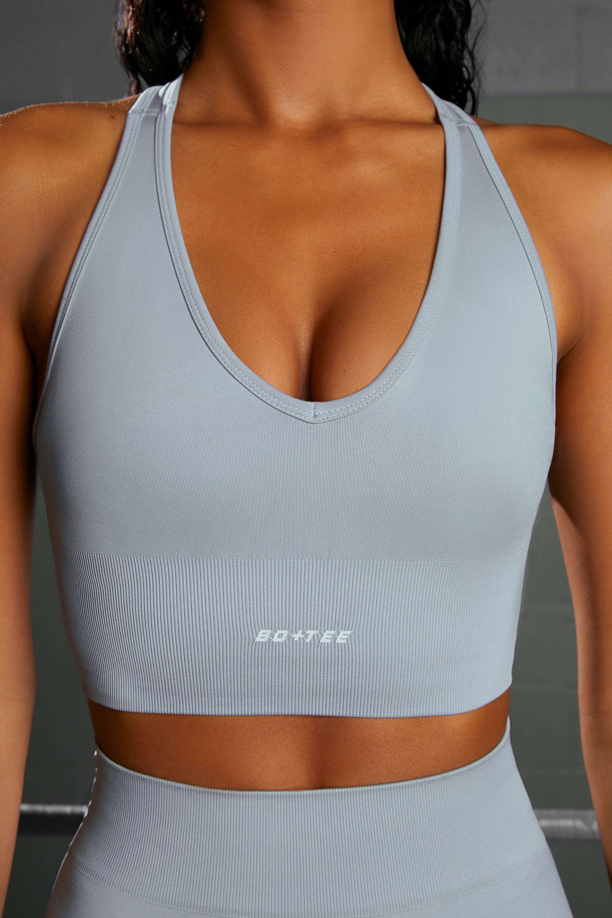 Grow your confidence in Overhaul seamless crop top, featuring a plunging halter neckline and racer back design with knot detailing. Designed in smooth, slinky seamless fabric for a supportive bust flatter fit, this blue gym top is a stylish upgrade to your workout wardrobe. Pair with the matching gym shorts and look amazing from every angle.