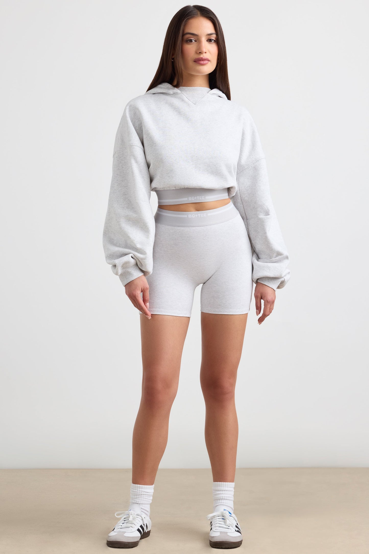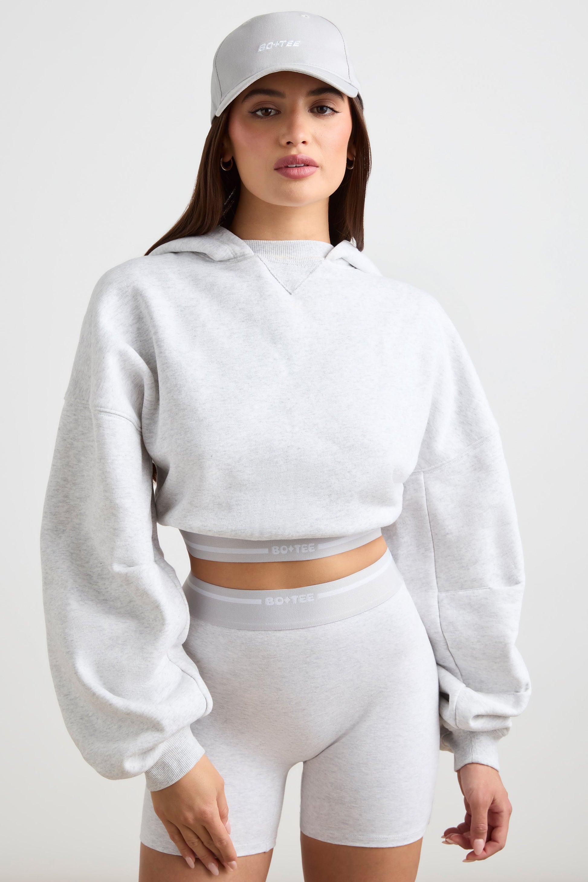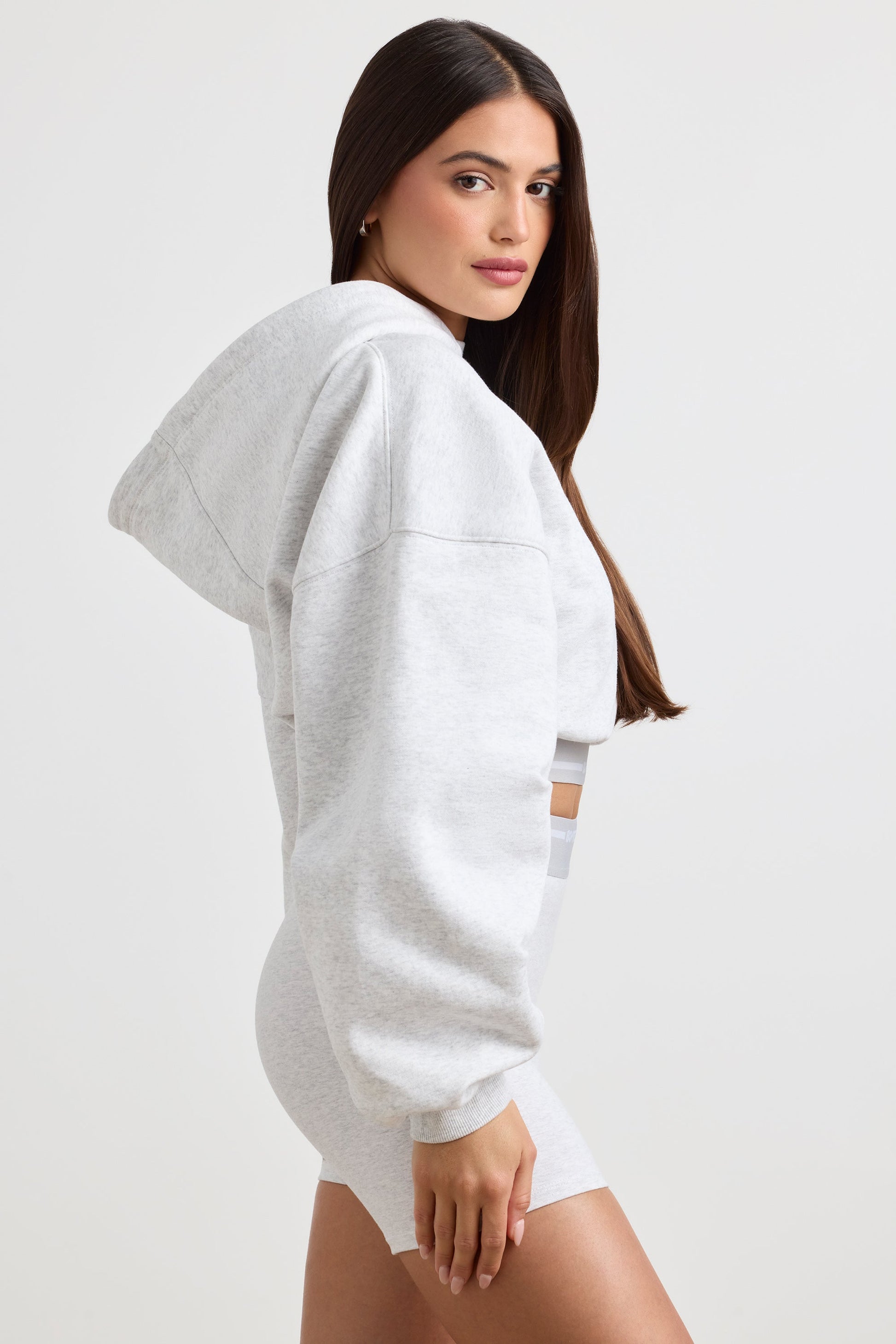 Cropped Hoodie in Grey Marl