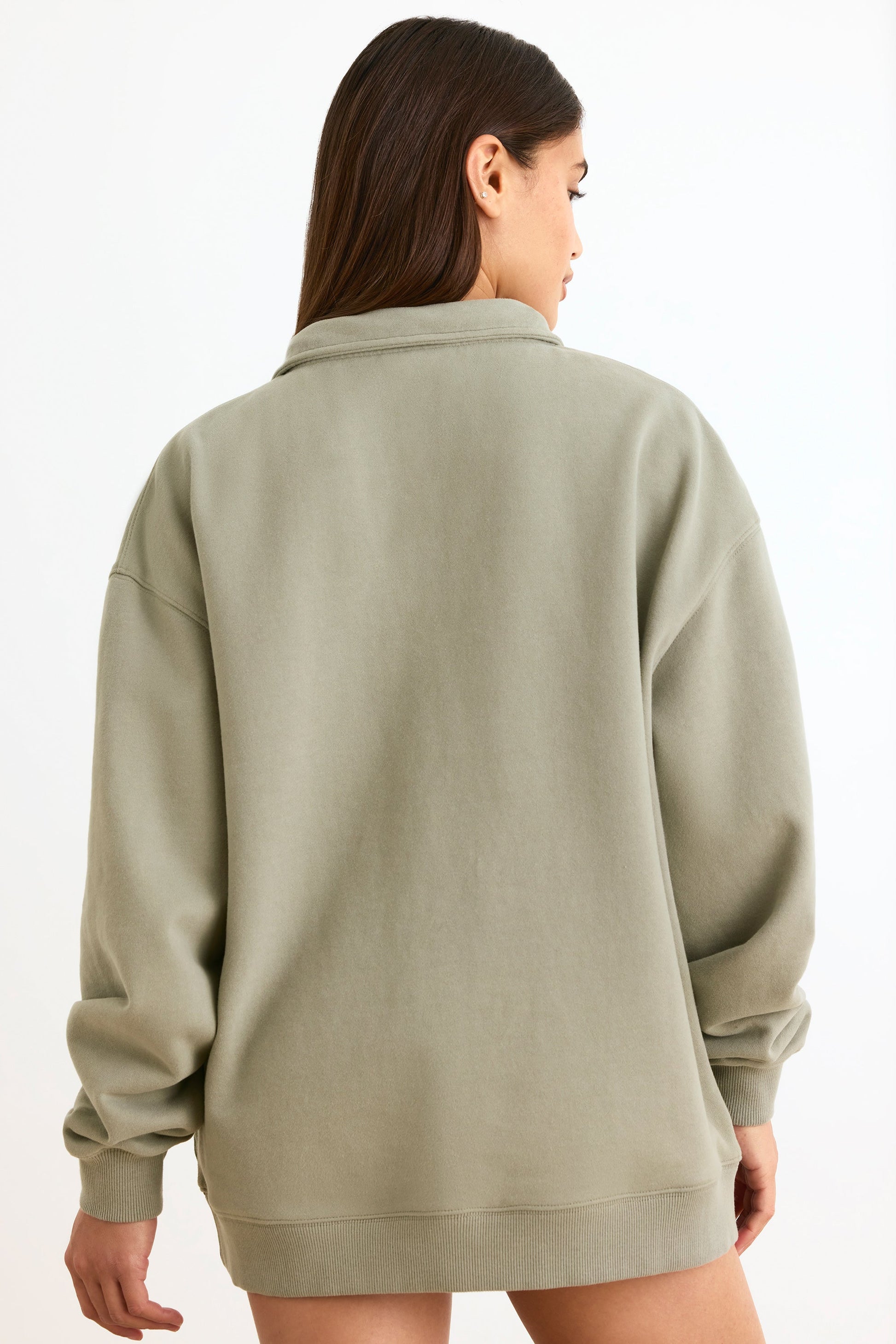 Sporty staples. Inspired by retro styles, this washed quarter-zip sweatshirt is adorned with a contrasting sporty slogan at the front. It��s made from our heavyweight 330gsm custom-knit fabric with a super soft fleece interior for a cosy feel and features dropped shoulders that enhance the relaxed silhouette. The oversized fit is tempered with a ribbed hem and cuffs.