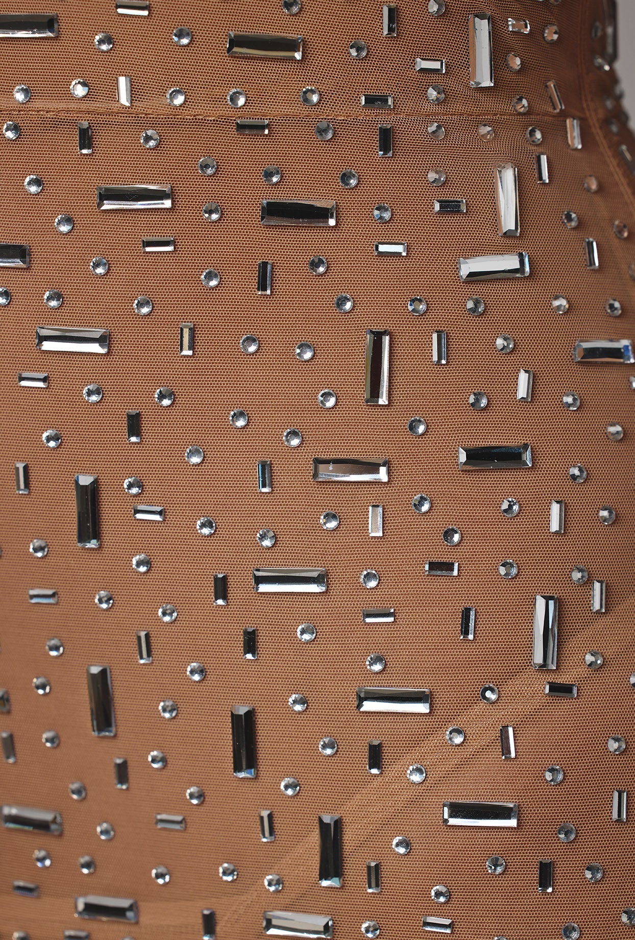 Designed in our premium sheer stretch mesh and hand embellished with delicate crystal hotfix adornments, Soraya is undeniably captivating. With a high halter neckline and seductive, figure-hugging fit, Soraya is complete with a narrow back split that allows for graceful movement, wherever the evening takes you.