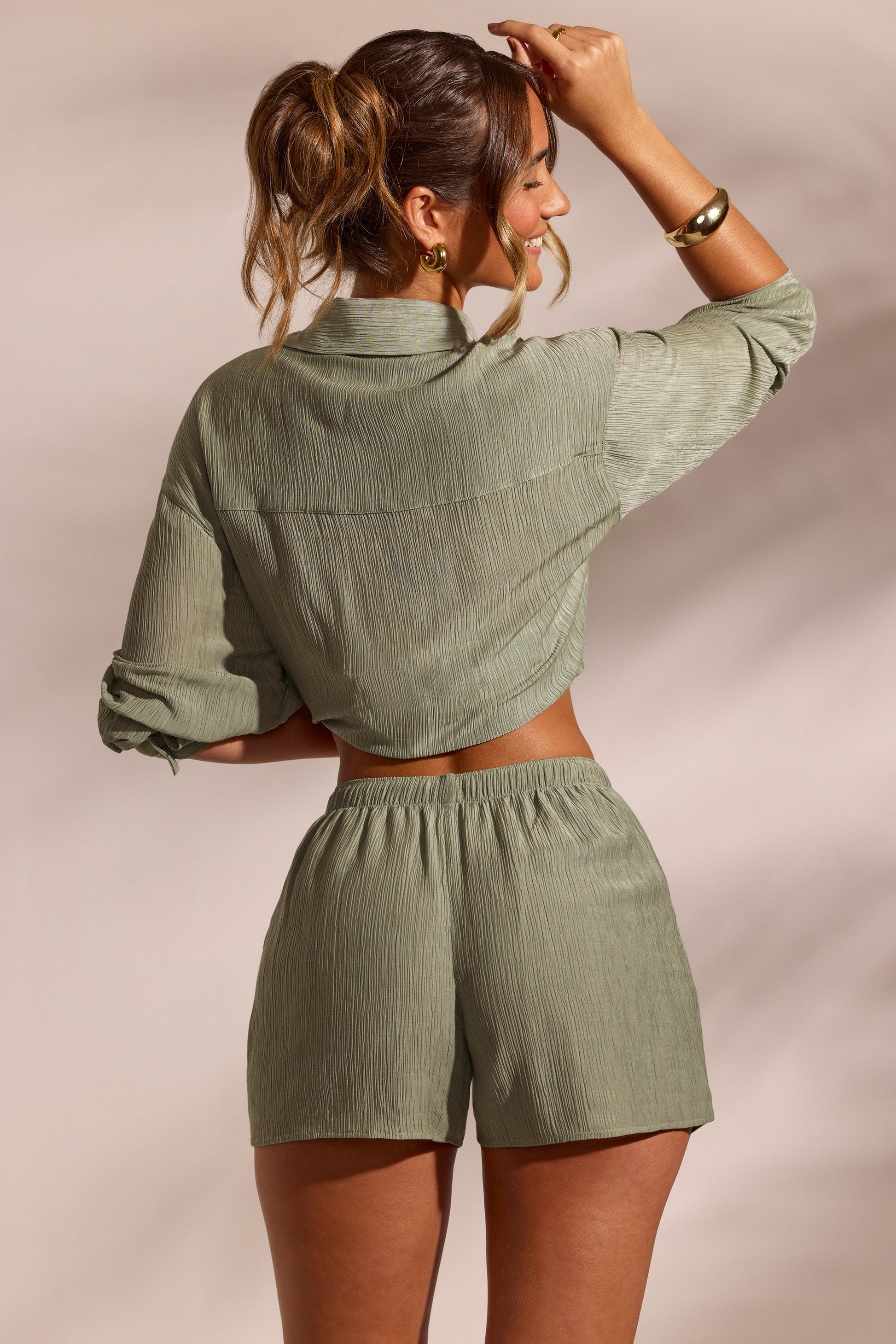 Crinkle Textured Beach Shorts in Light Green