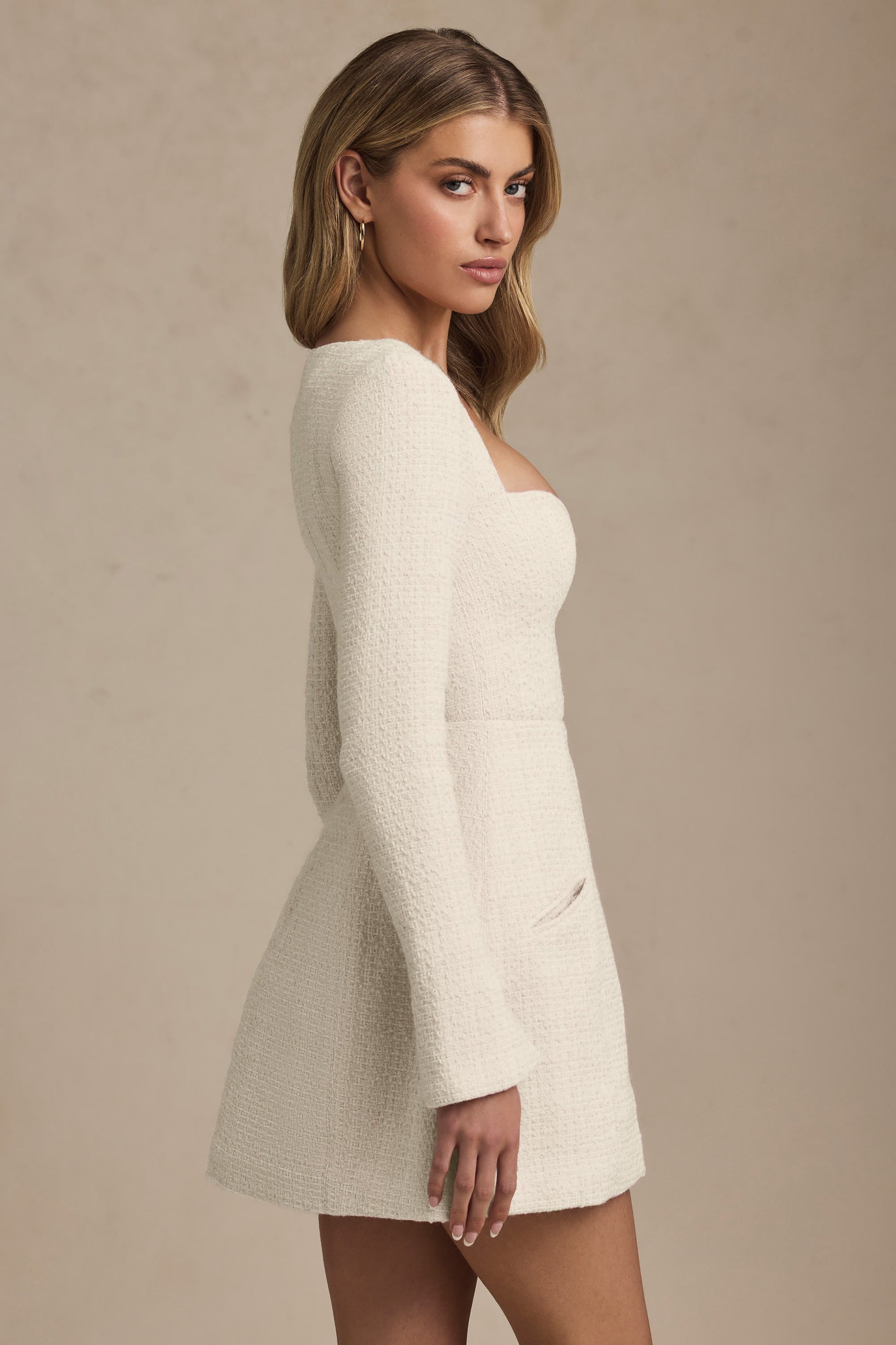 Sweetheart-Neck Structured Mini Dress in Ivory