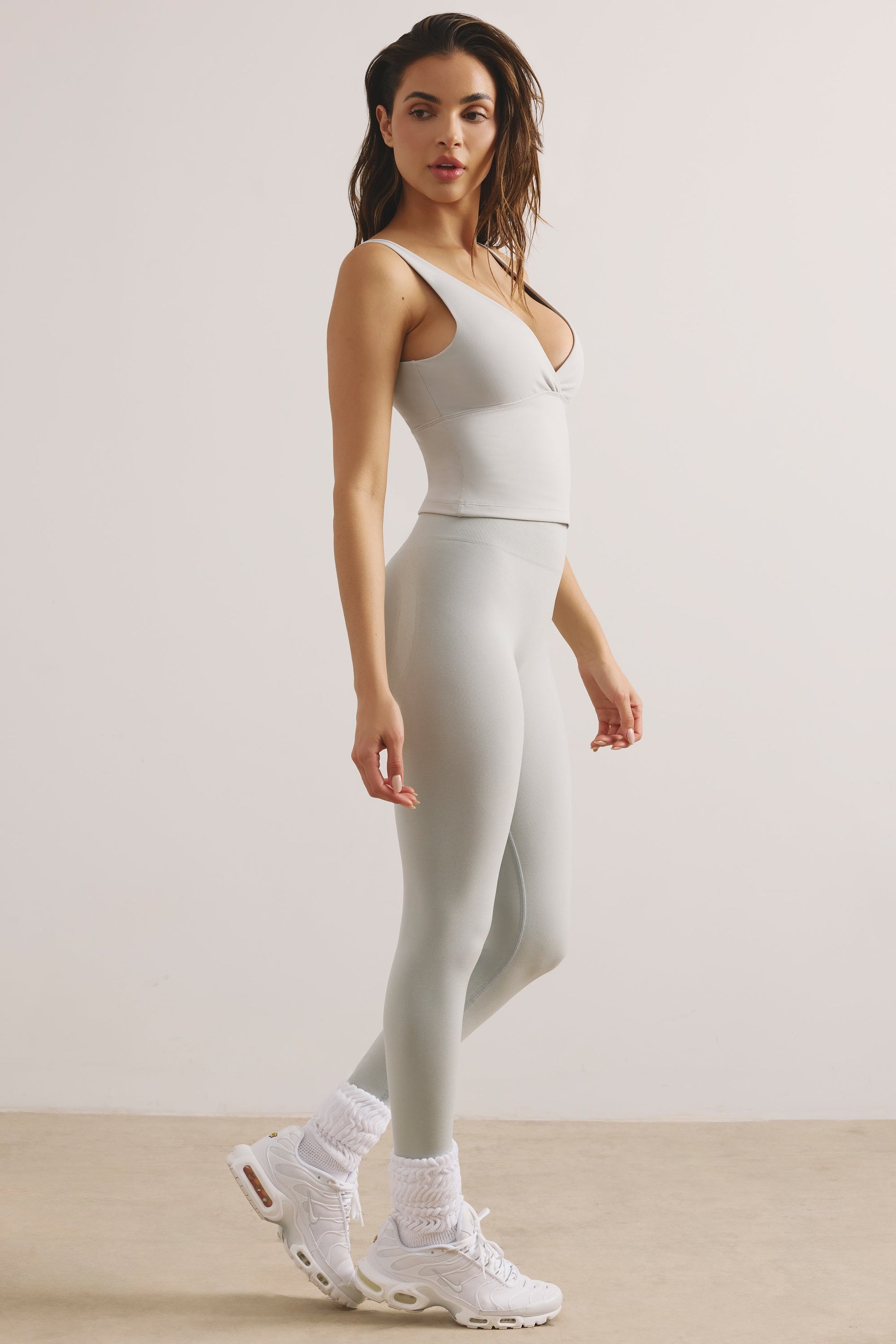 Soft Active V-Neck Tank Top in Light Grey