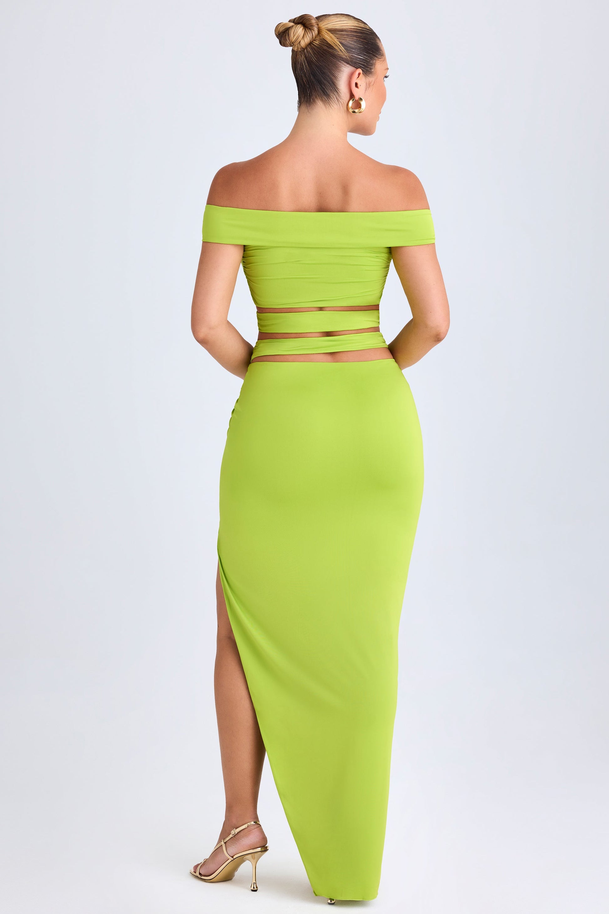Asymmetric Cut-Out Maxi Skirt in Lime Green