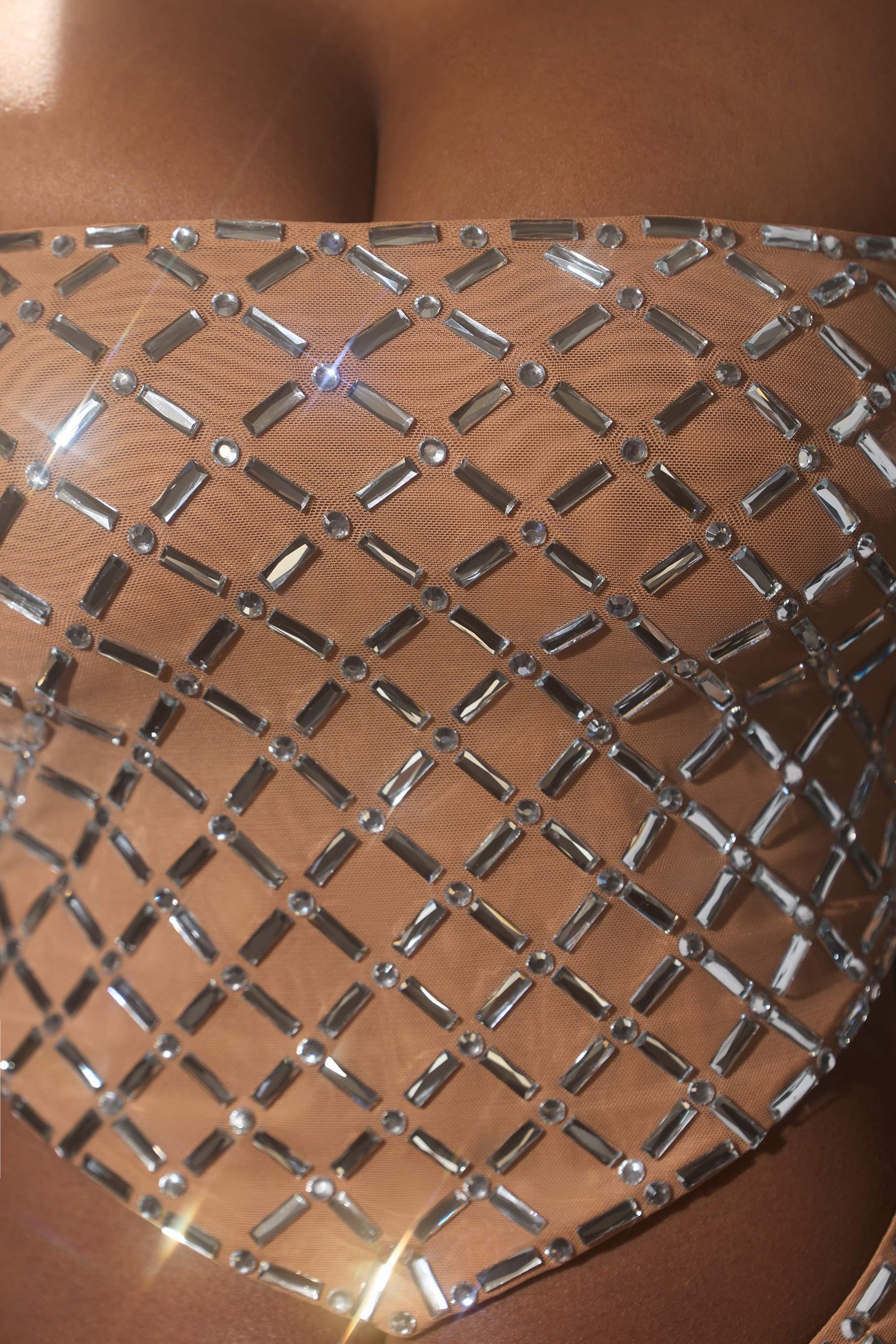 Get party season ready with the Veah mini skirt. Perfect for pairing with a fresh white tank or the coordinating Thora top, it��s crafted from premium 20D mesh with the perfect amount of stretch to a universally flattering mid-rise fit. Cut to a figure-hugging silhouette with an asymmetric hem, it��s elevated with all-new square HOTFIX embellishments for maximum sparkle.