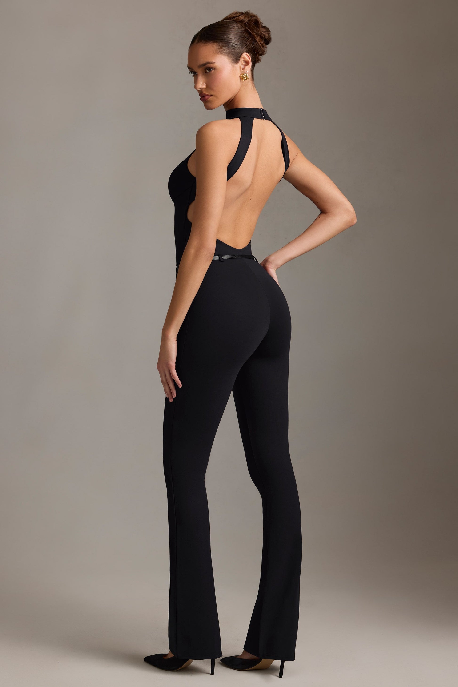 Backless Turtleneck Jumpsuit in Black