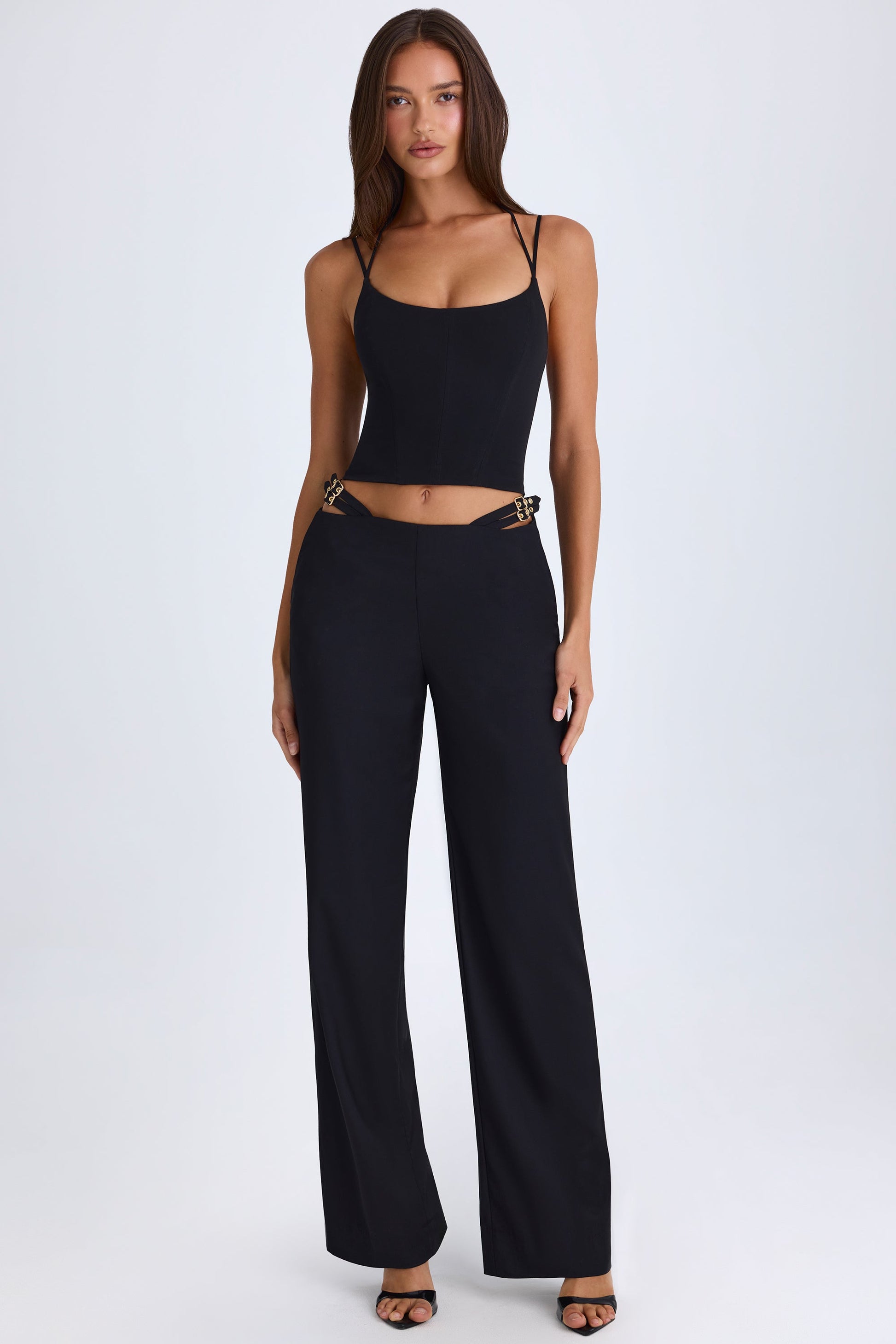 Tall Belted Cut-Out Wide-Leg Trousers in Black